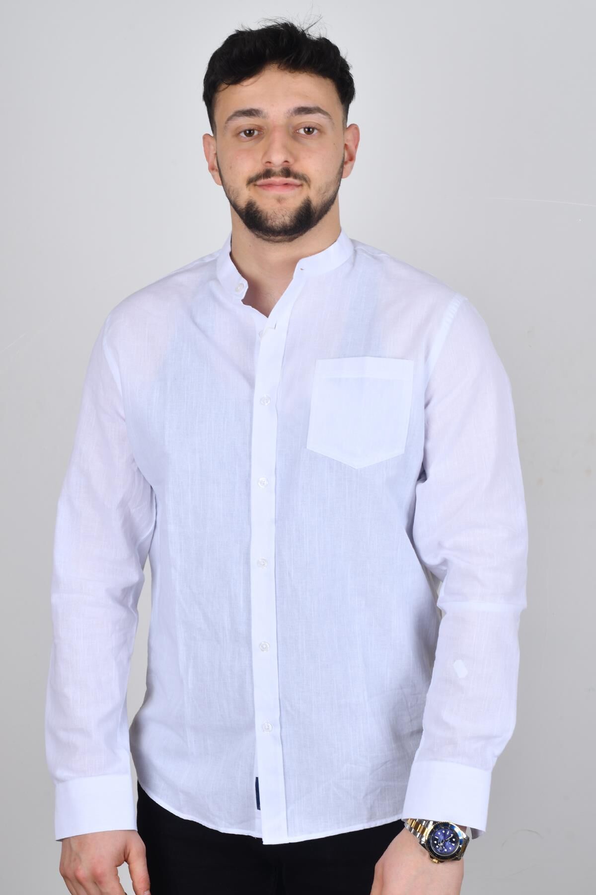 Cazador 23YCEED02021 Erkek Beyaz Önü Cepli Uzun Kol Gömlek