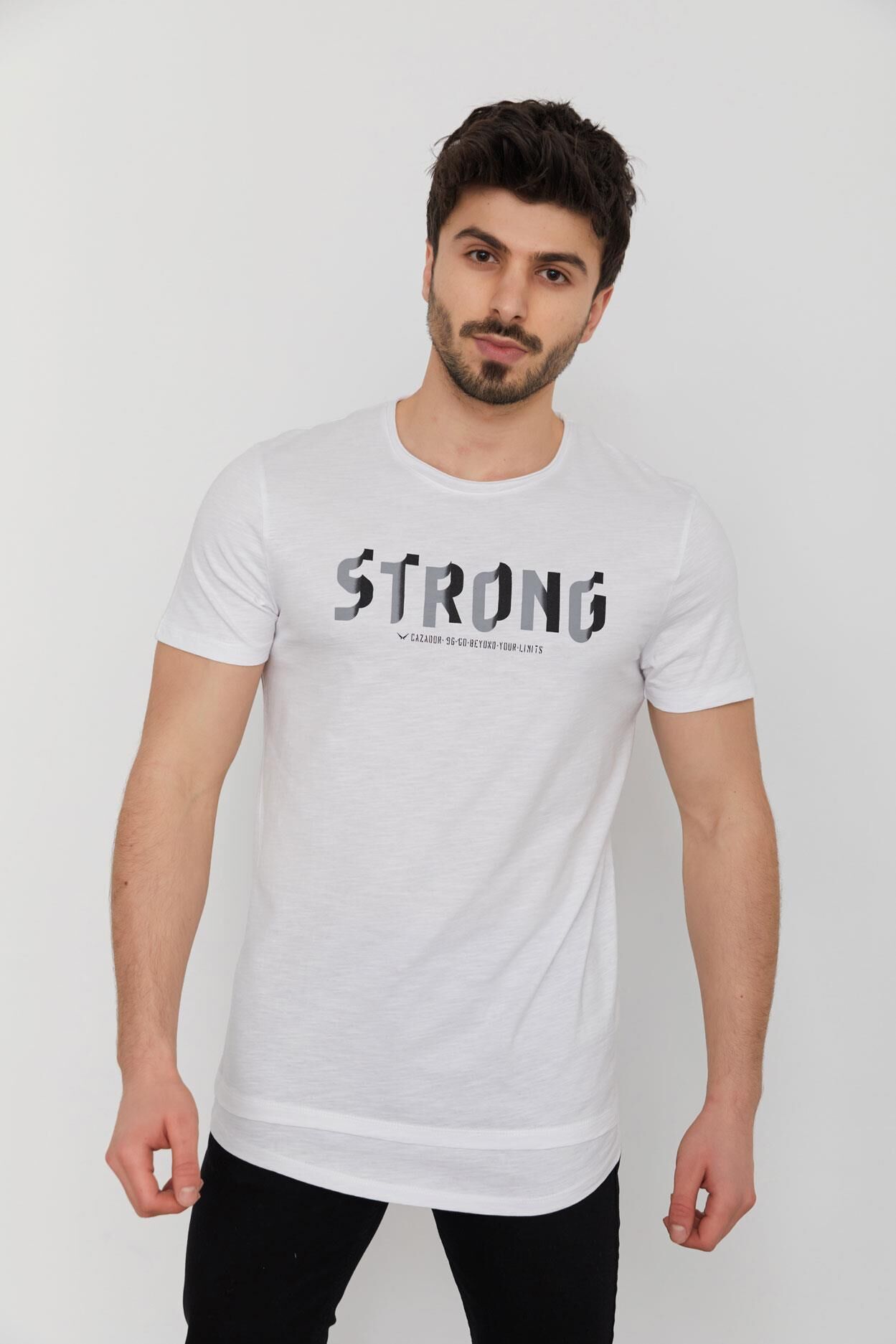 Cazador 23YCEEO04064 Erkek Beyaz Baskılı Bisiklet Yaka T-Shirt