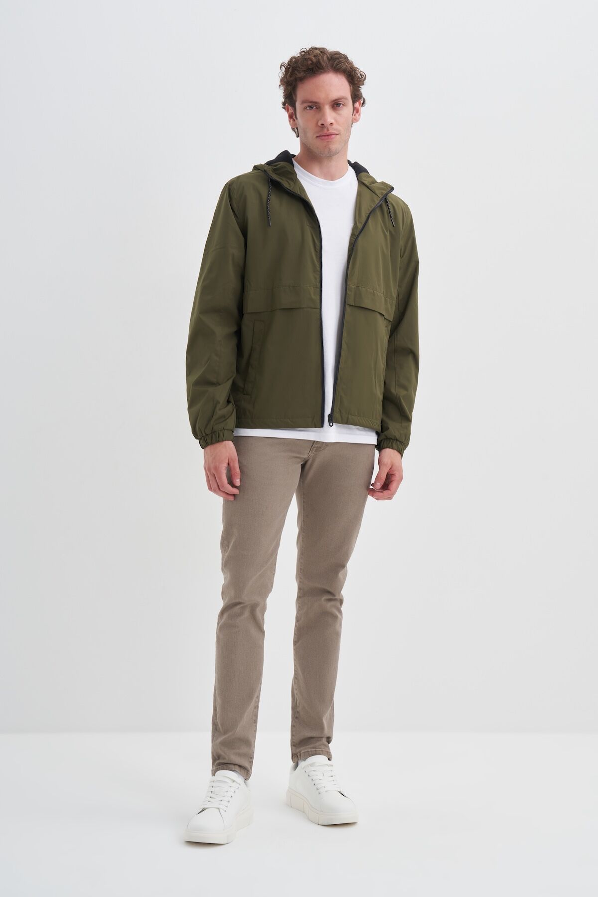 Cazador 24KCEED01011 Haki Erkek Paraşüt Kumaşlı İçi Polar Kapüşonlu Yağmurluk