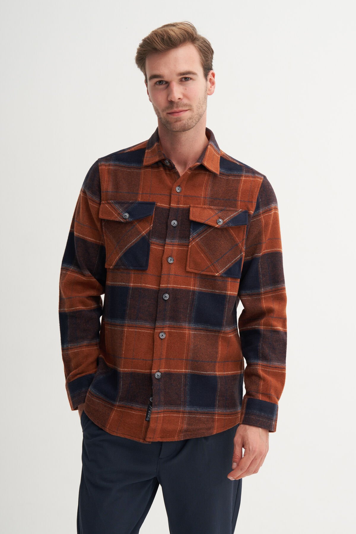Cazador 24KCEED02011 Kiremit Erkek Çift Cepli Oduncu Gömleği