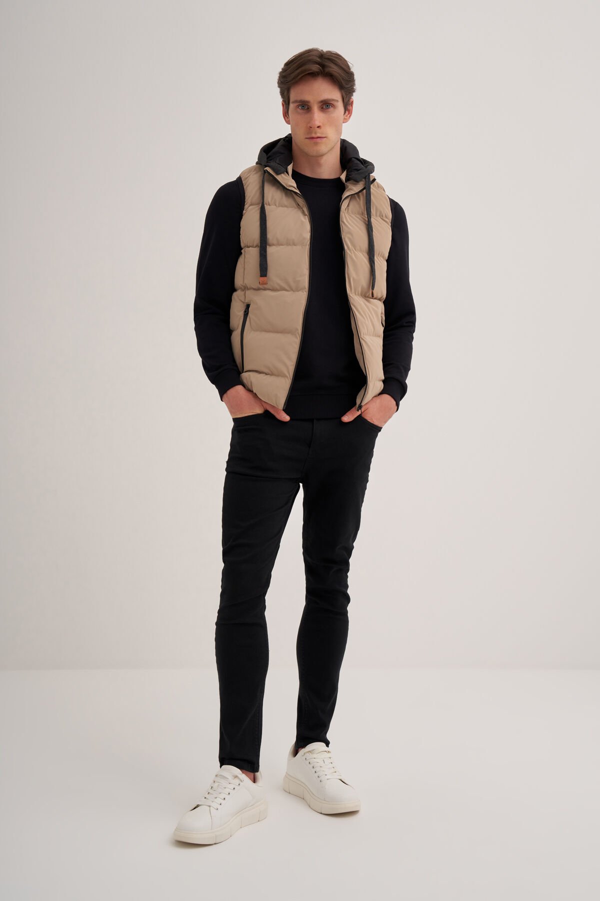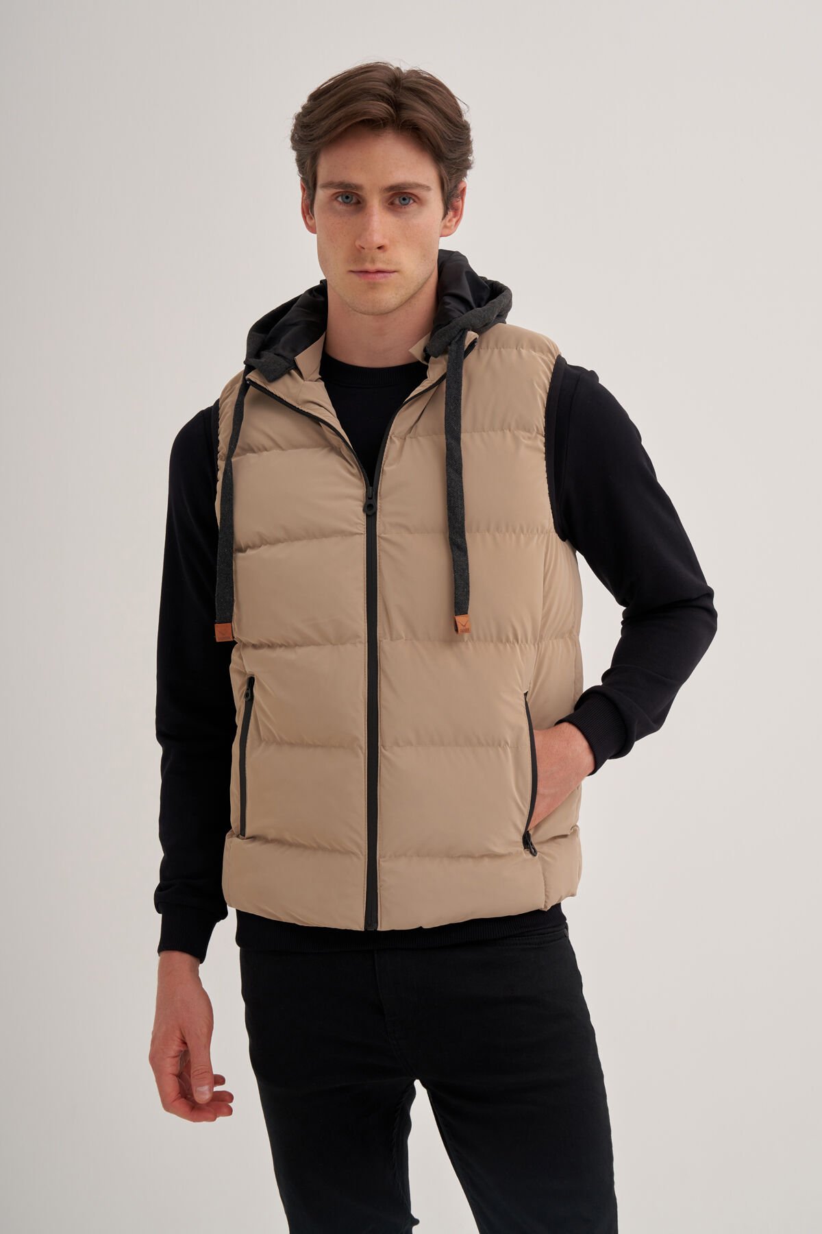 Cazador 24KCEEO01005 Bej Erkek Tak Çıkar Kapişonlu Şişme Sıfır Kollu Mikro Yelek