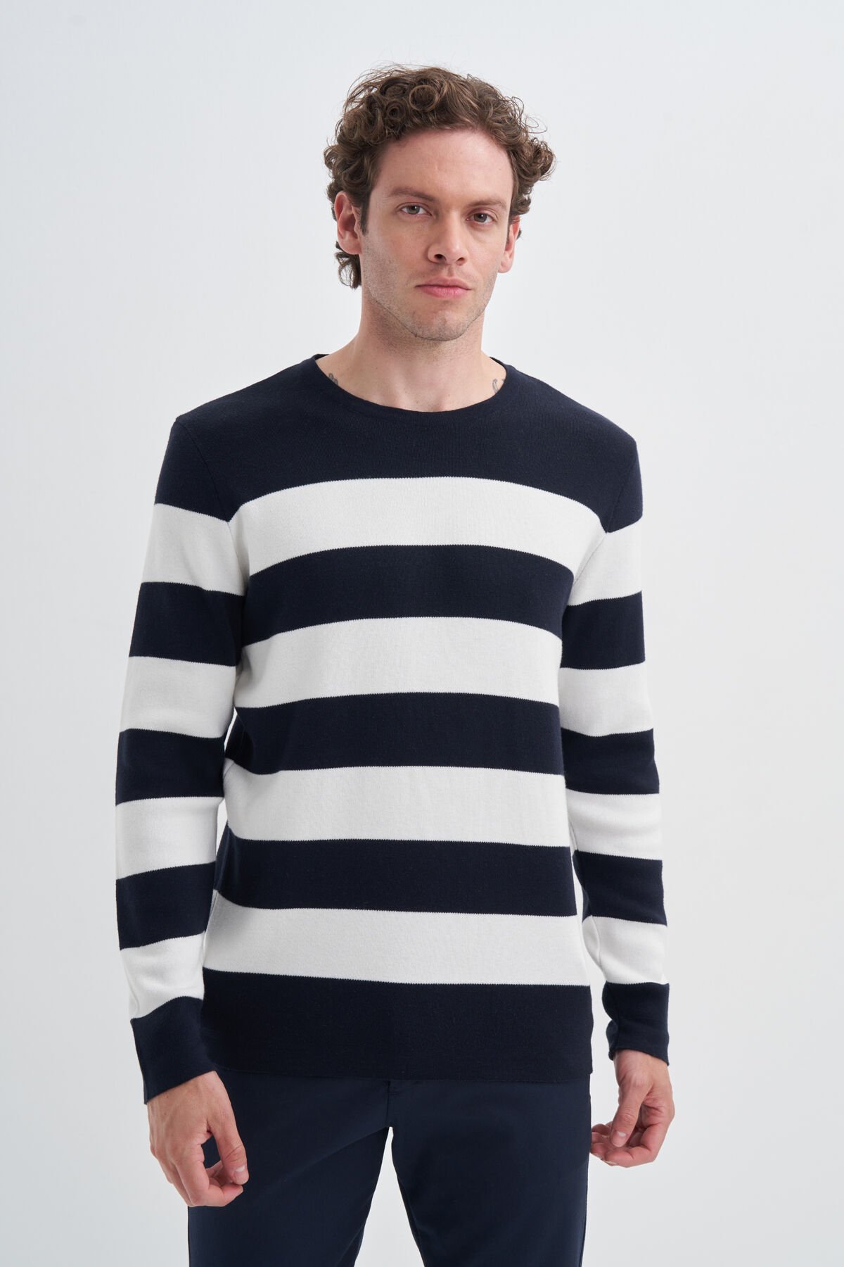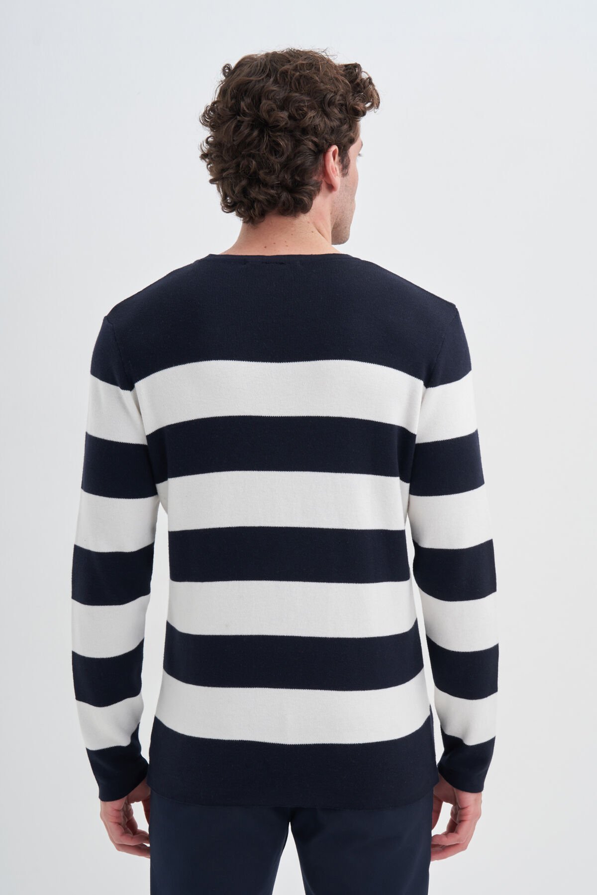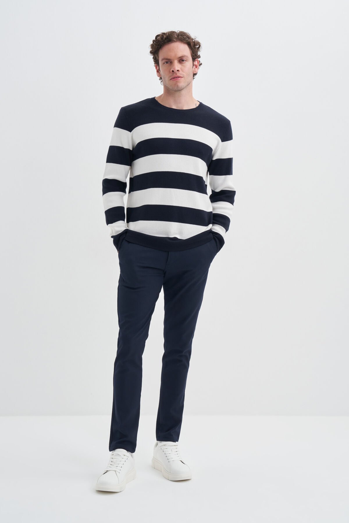Cazador 24KCEEO03080 Lacivert Erkek Beyaz Şerit Çİzgili Bisiklet Yaka Kazak