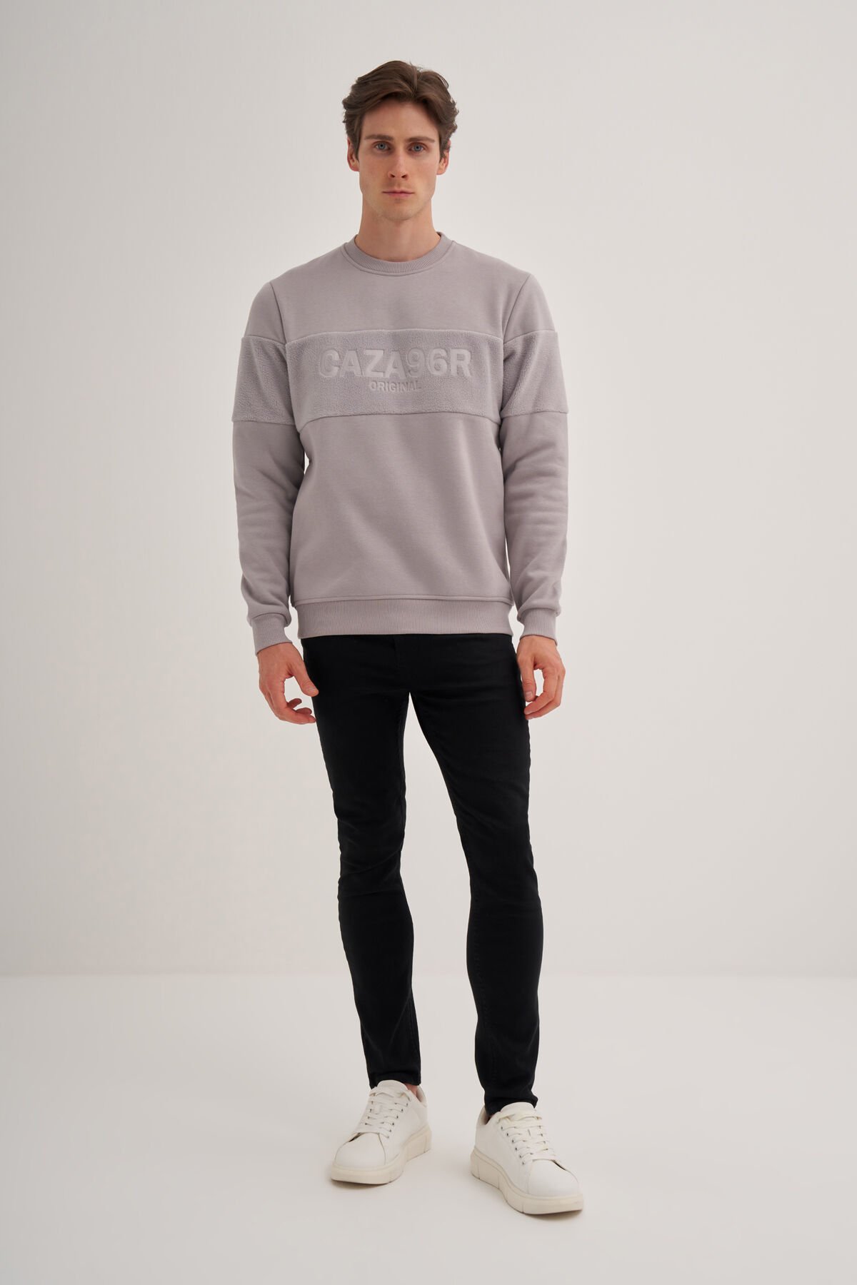 Cazador 24KCEEO05082 Gri Erkek Bisiklet Yaka Logo Armalı Polar Sweat