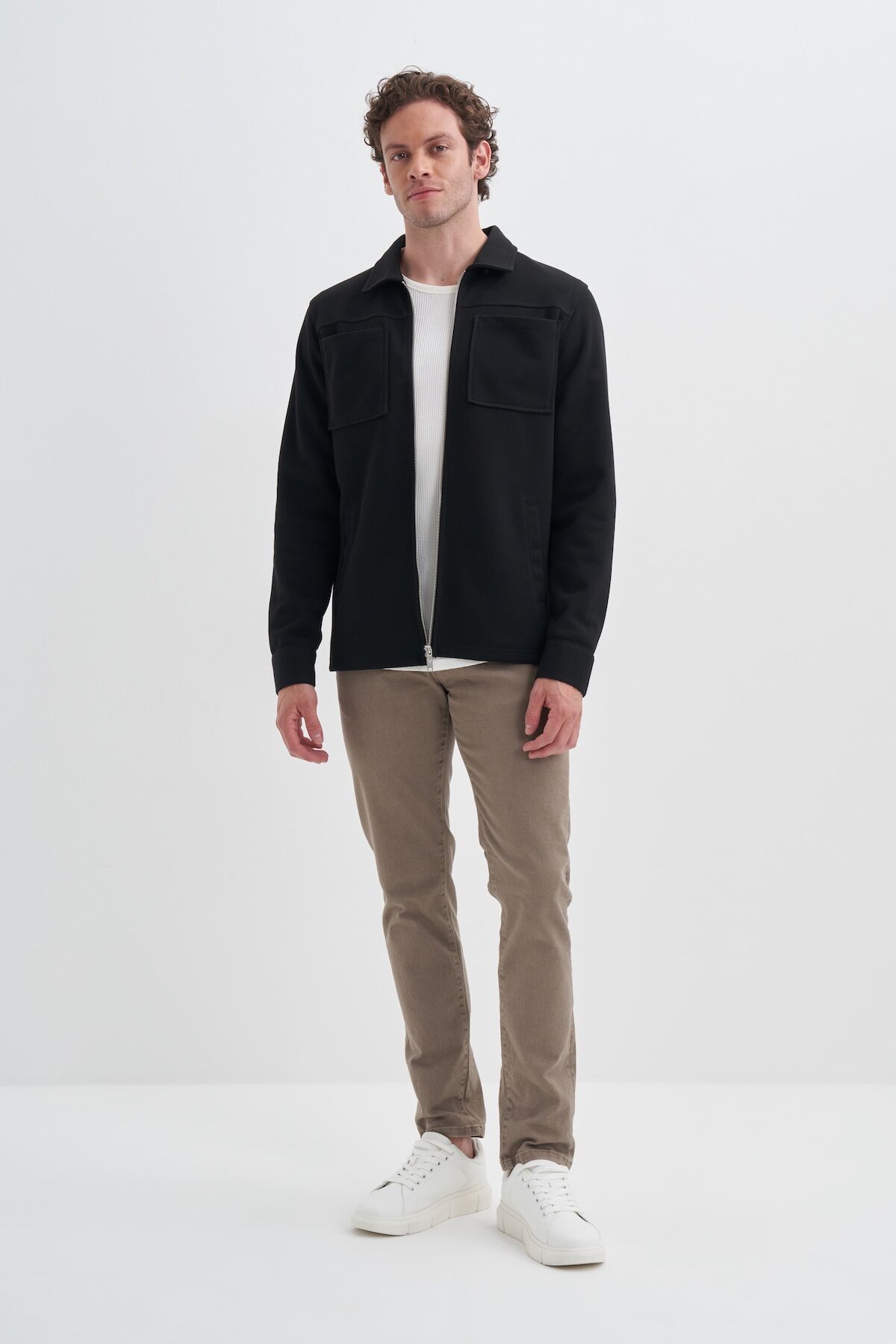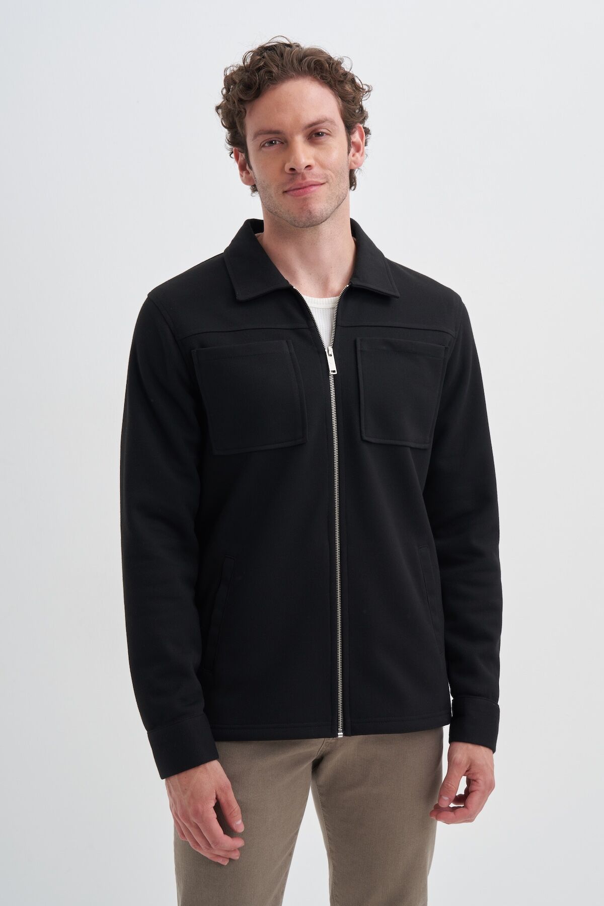 Cazador 24KCEEO05098 Siyah Erkek Gömlek Yaka Çok Cepli Full Fermuarlı Hırka