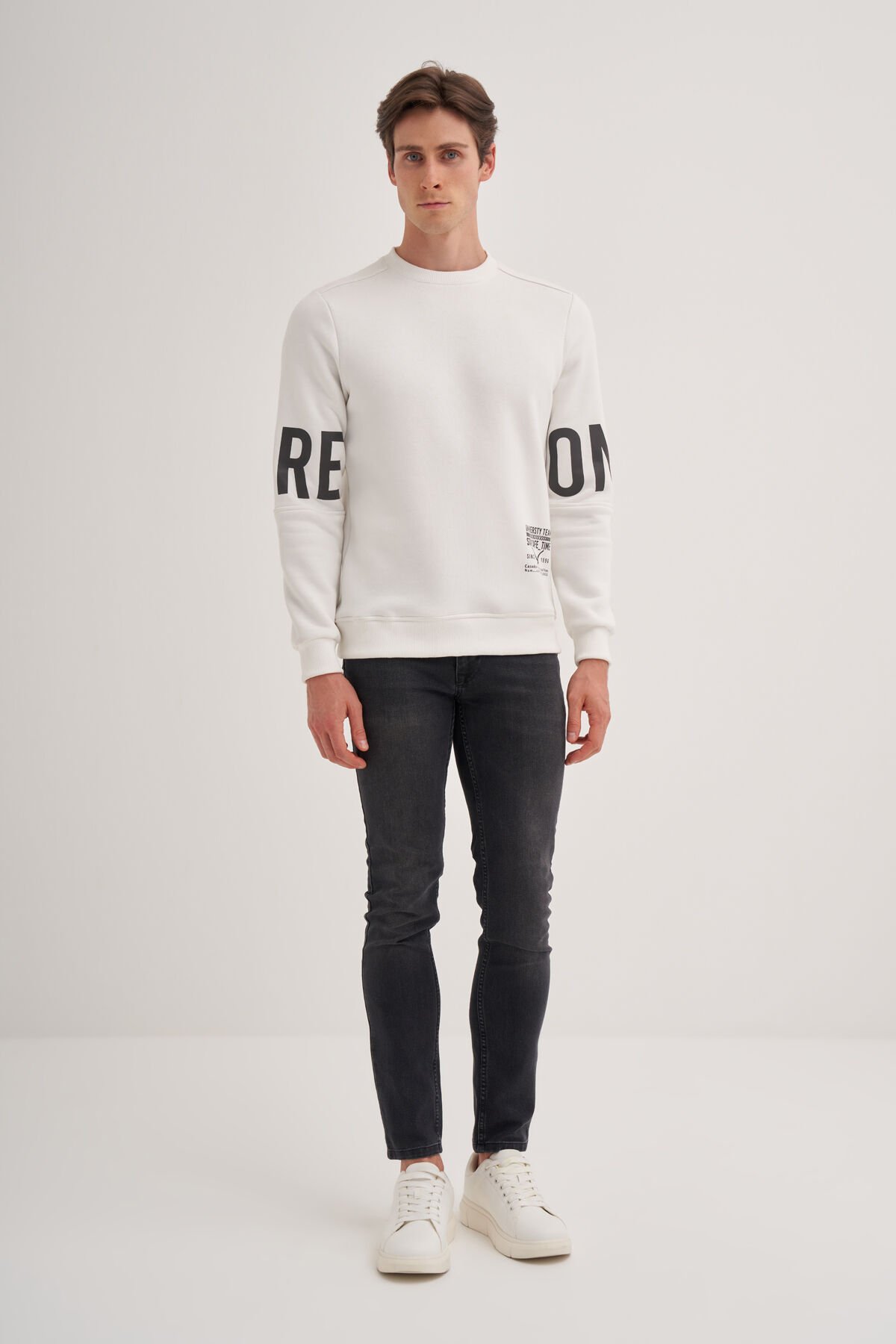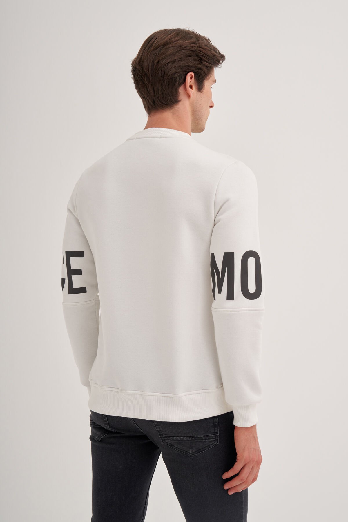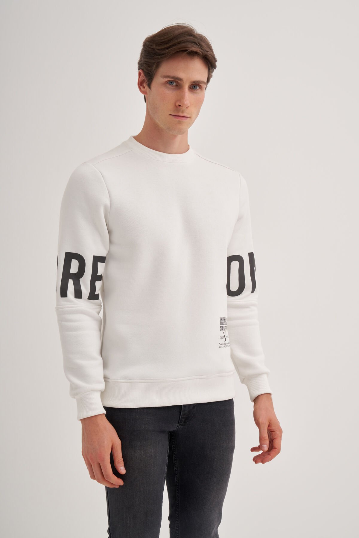 Cazador 24KCEEO05132 Ekru Erkek Bisiklet Yaka Üç İplik Yazı Detaylı Sweat