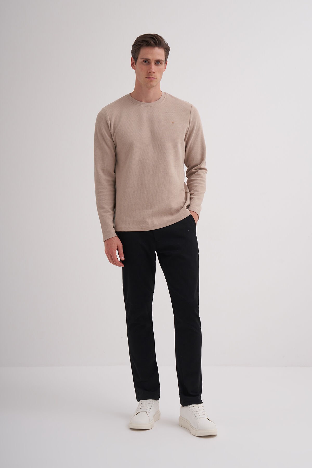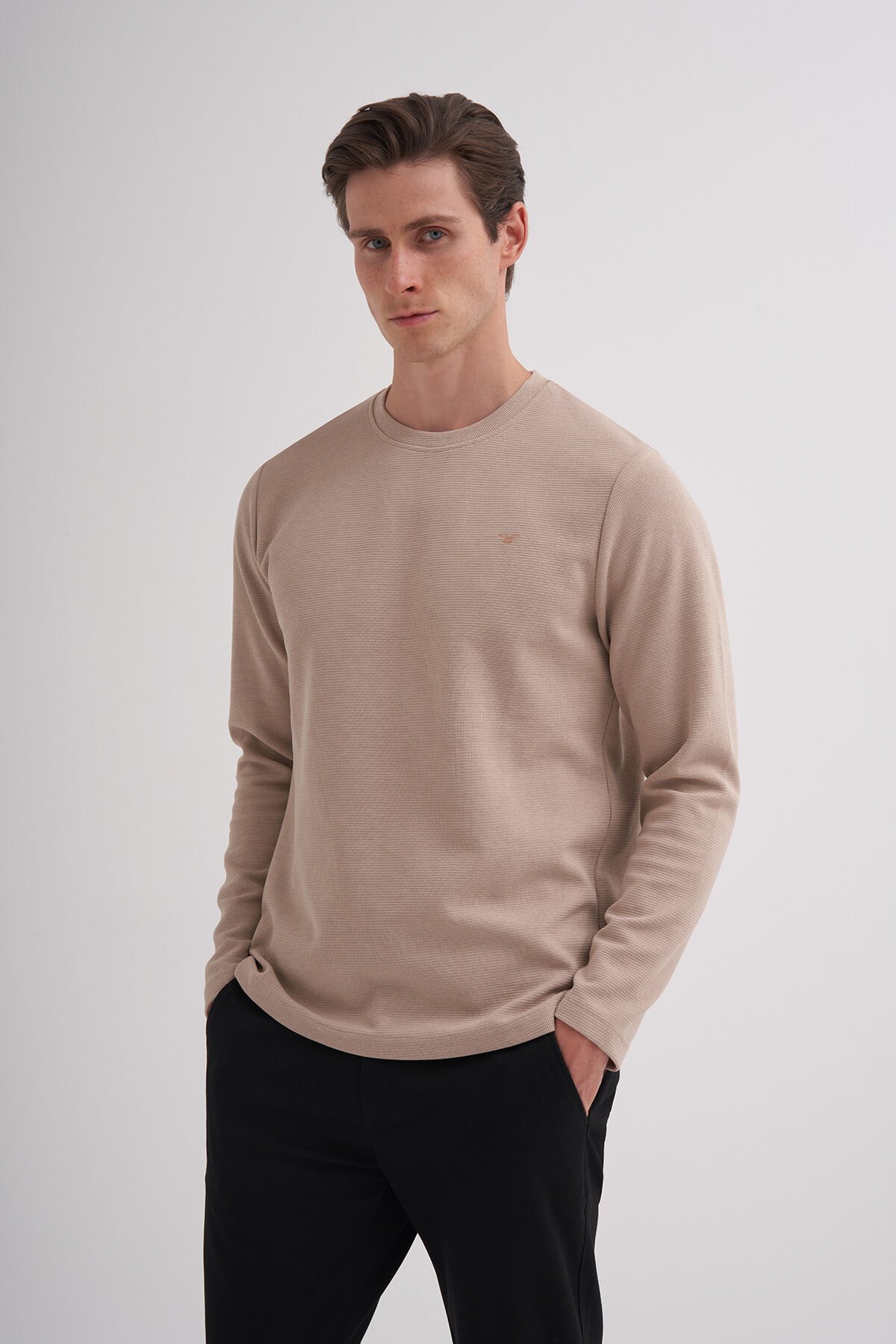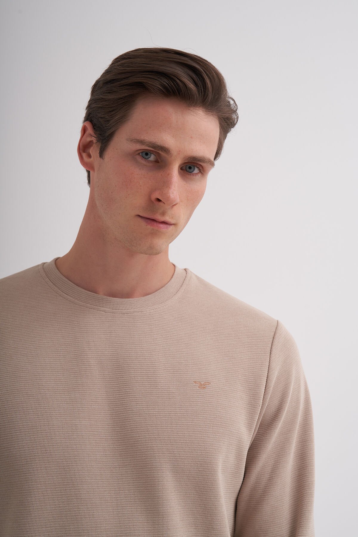 Cazador 24KCEEO05153 Bej Erkek Bisiklet Yaka İki İplik Waffle Sweat