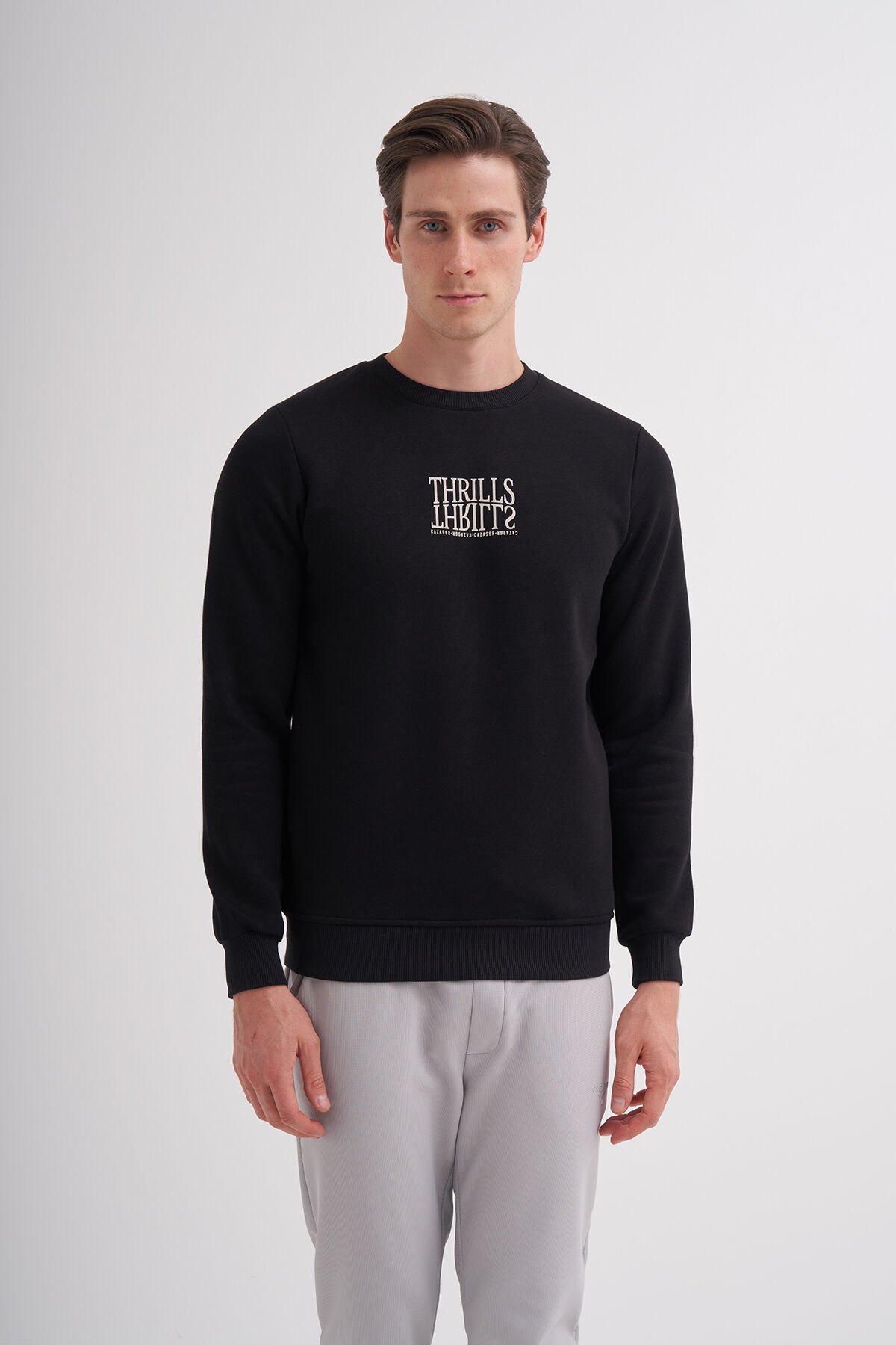 Cazador 24KCEEO05223 Siyah Erkek 3 İplik Logolu Bisiklet Yaka Sweat Tshirt