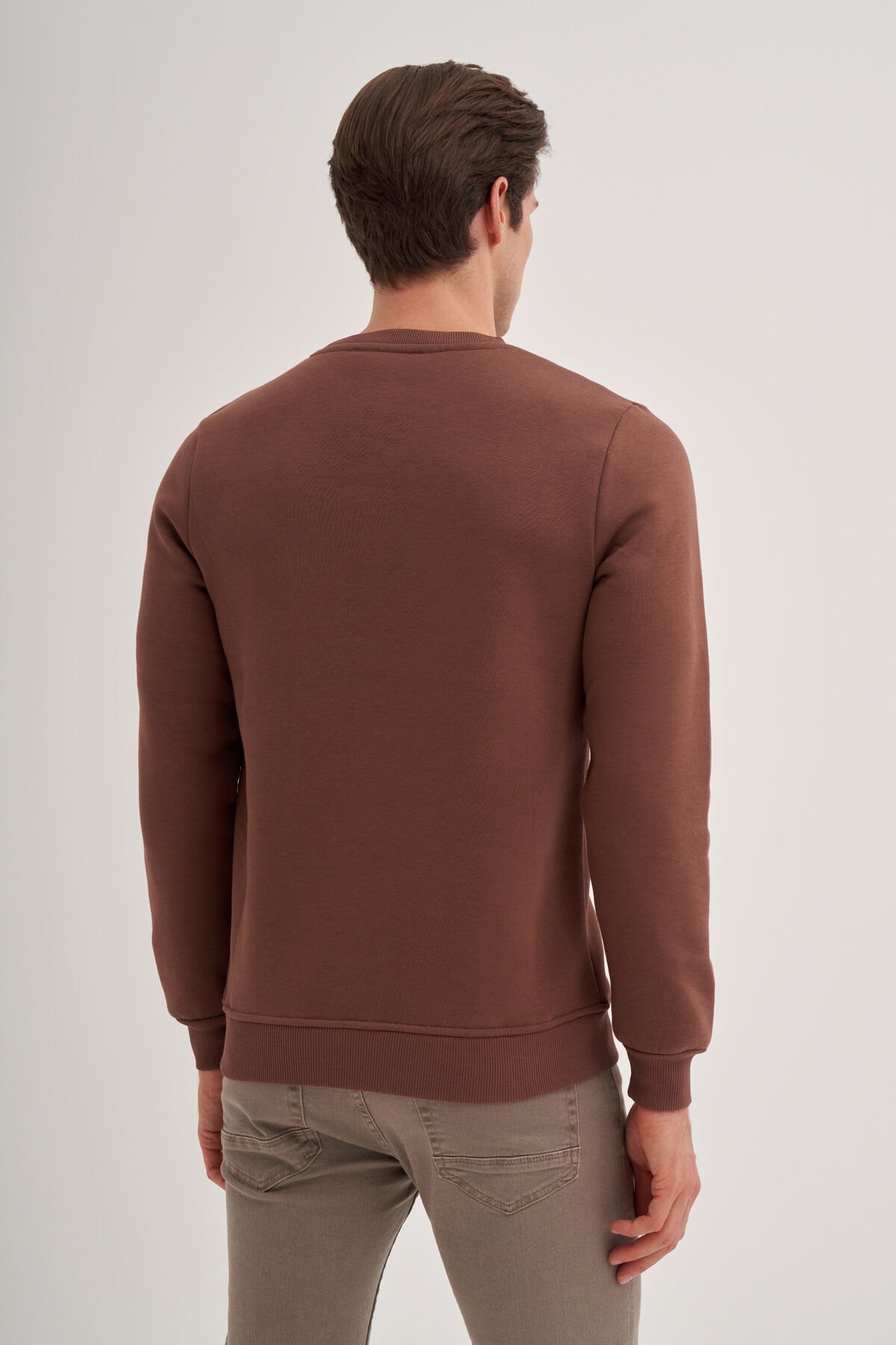 Cazador 24KCEEO05224 Kahverengi Erkek Bisiklet Yaka Önü Yazı Logolu Sweat Tshirt