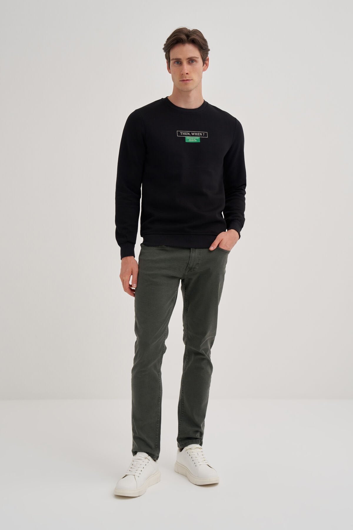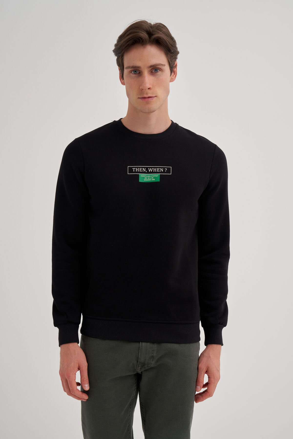 Cazador 24KCEEO05224 Siyah Erkek Bisiklet Yaka Önü Yazı Logolu Sweat Tshirt
