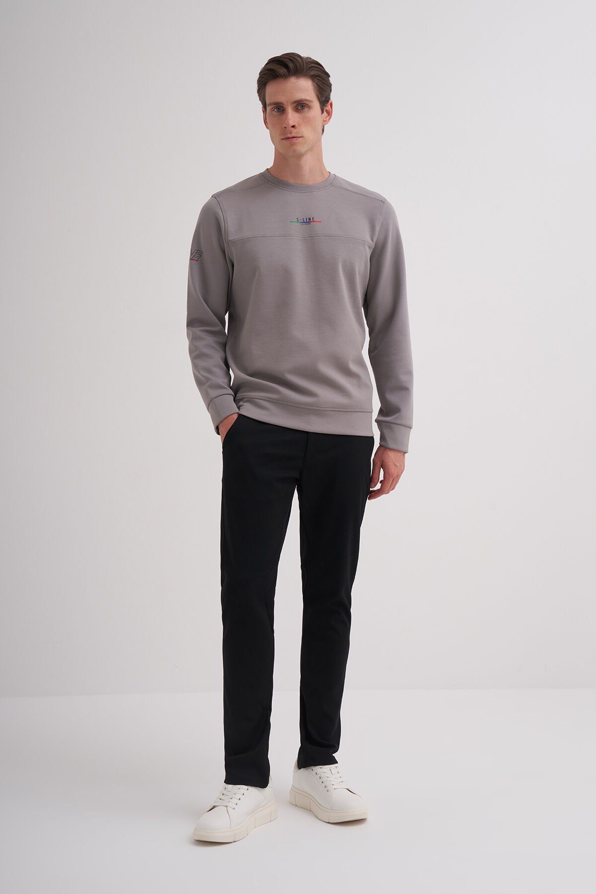 Cazador 24KCEEO05238 Gri Erkek Bisiklet Yaka Omuzdan Ve göğüsten Yazı Detaylı Scuba Sweat