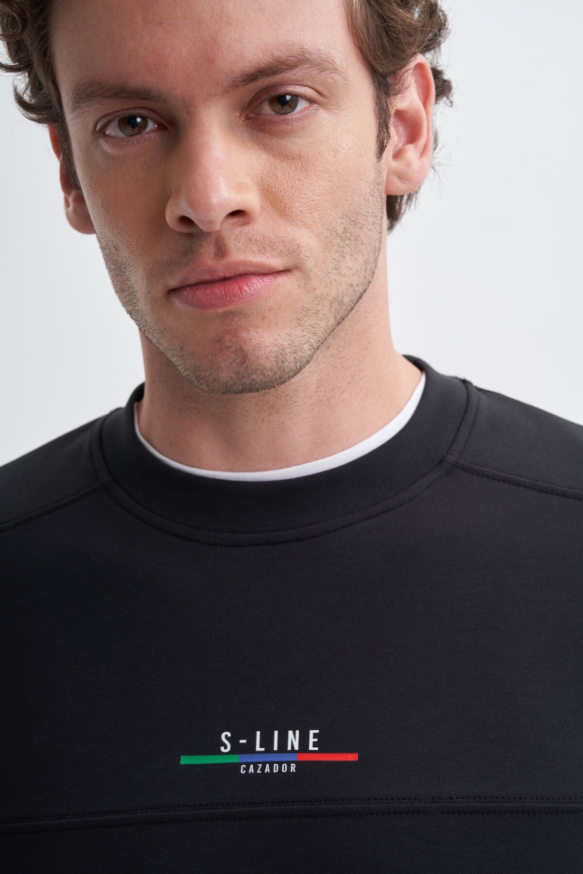 Cazador 24KCEEO05238 Siyah Erkek Bisiklet Yaka Omuzdan Ve göğüsten Yazı Detaylı Scuba Sweat