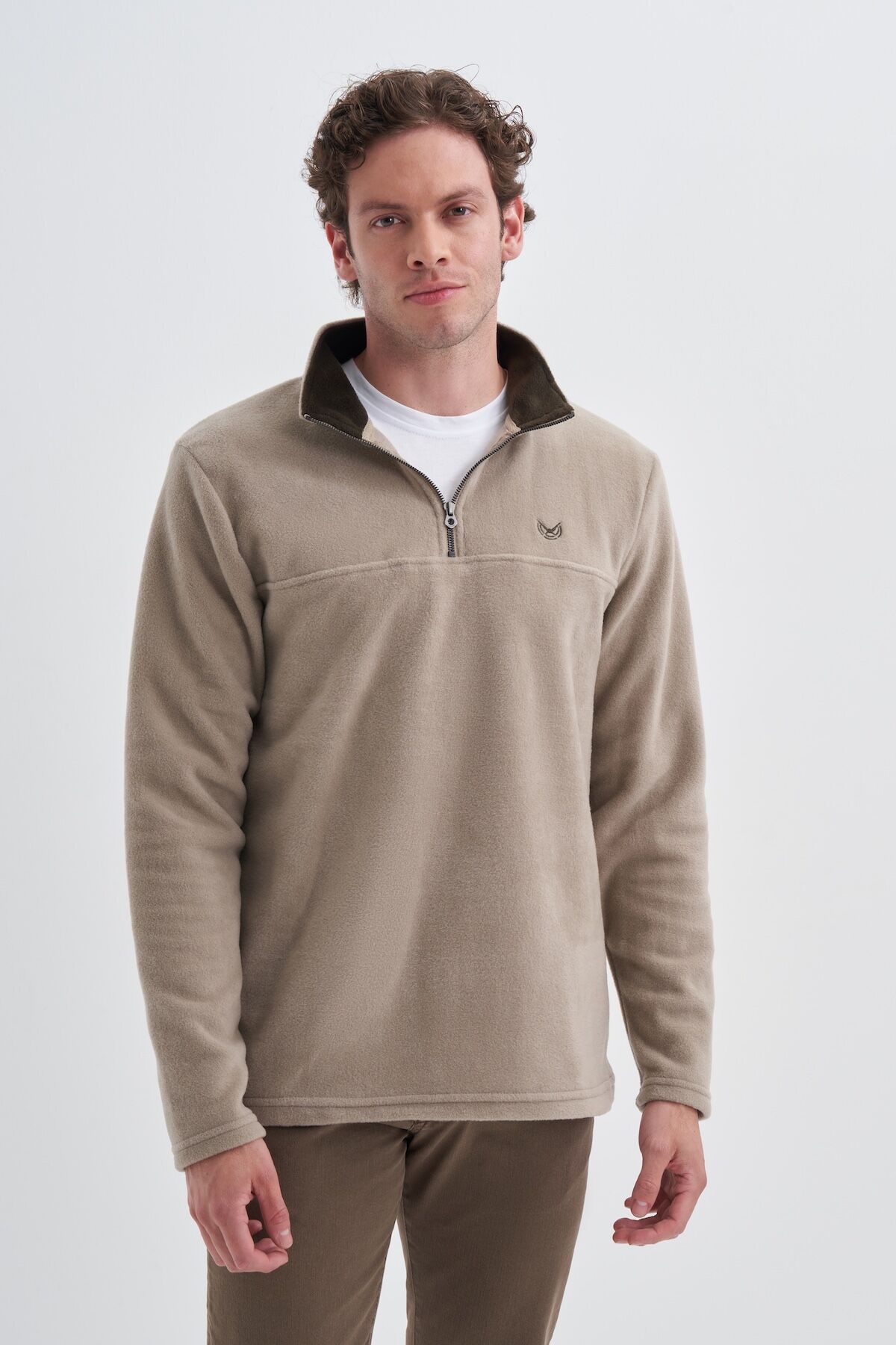 Cazador 24KCEEO05632 Bej Önü Fermuarlı Erkek Polar Sweat