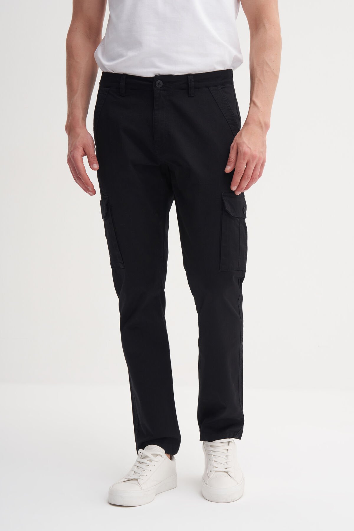 Cazador 25YCEEO04095 Beyaz Erkek Bisiklet Yaka %100 Pamuk Black Yazılı Ekstra Relax Fit T-shirt