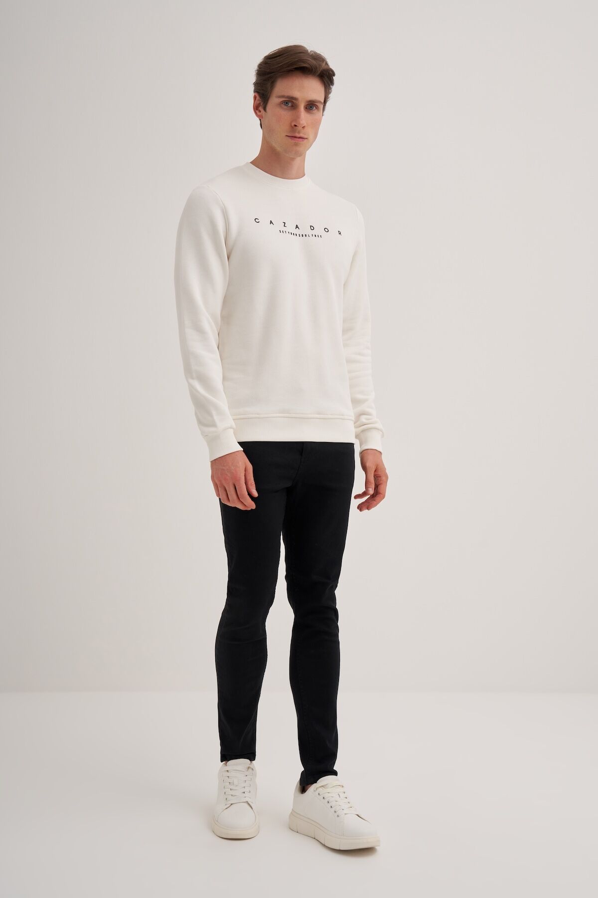 Cazador 52350 Ekru Erkek %100 Pamuk Önü Yazılı Slim Fit Sweatshirt