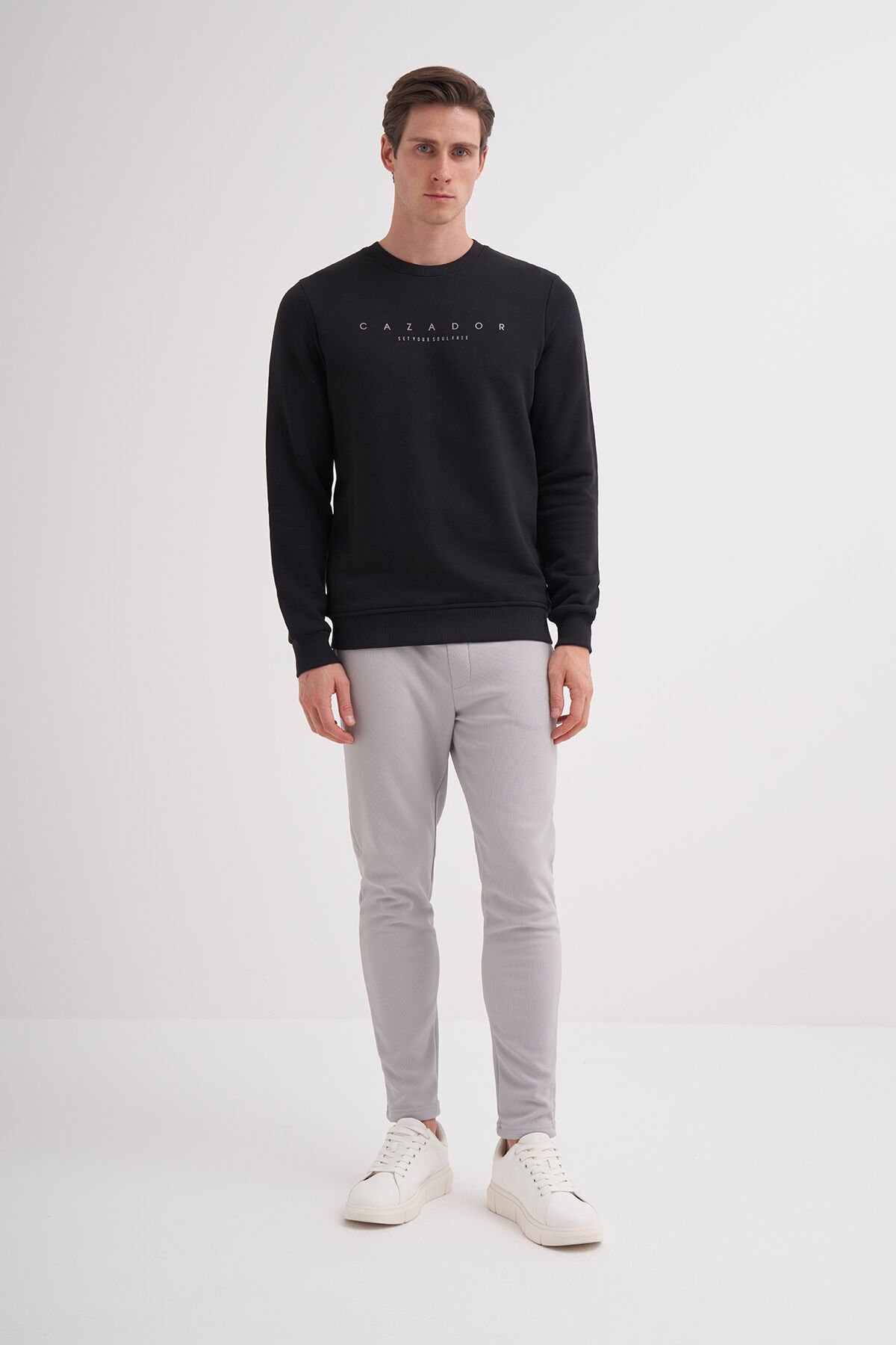 Cazador 52350 Siyah Erkek %100 Pamuk Önü Yazılı Slim Fit Sweatshirt