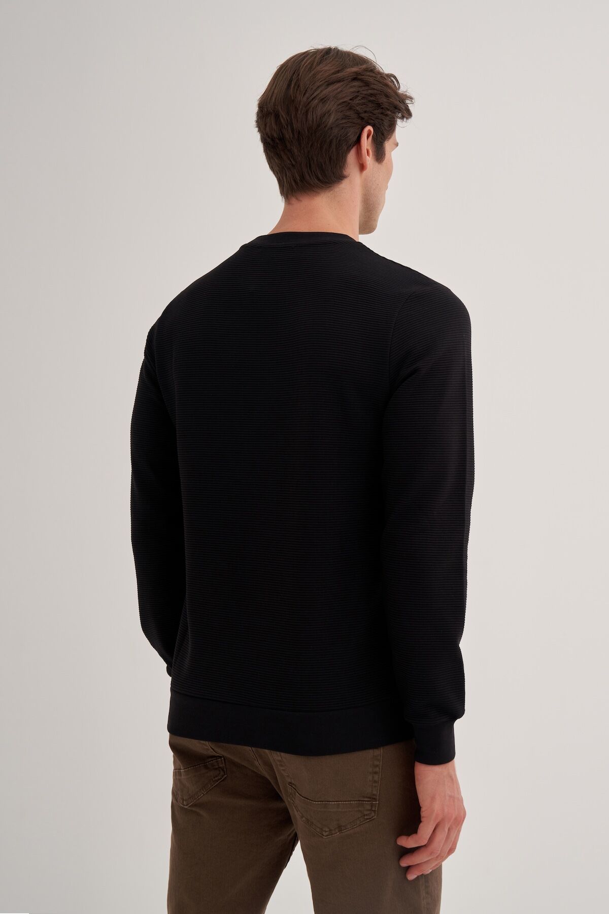 Cazador 52470 Siyah Erkek Bisiklet Yaka Fitilli Slim Fit Sweatshirt