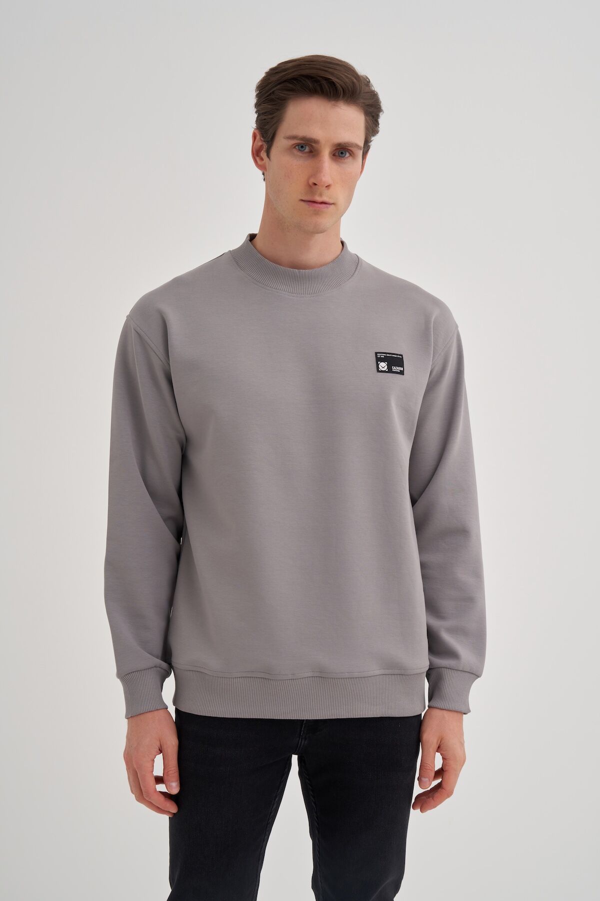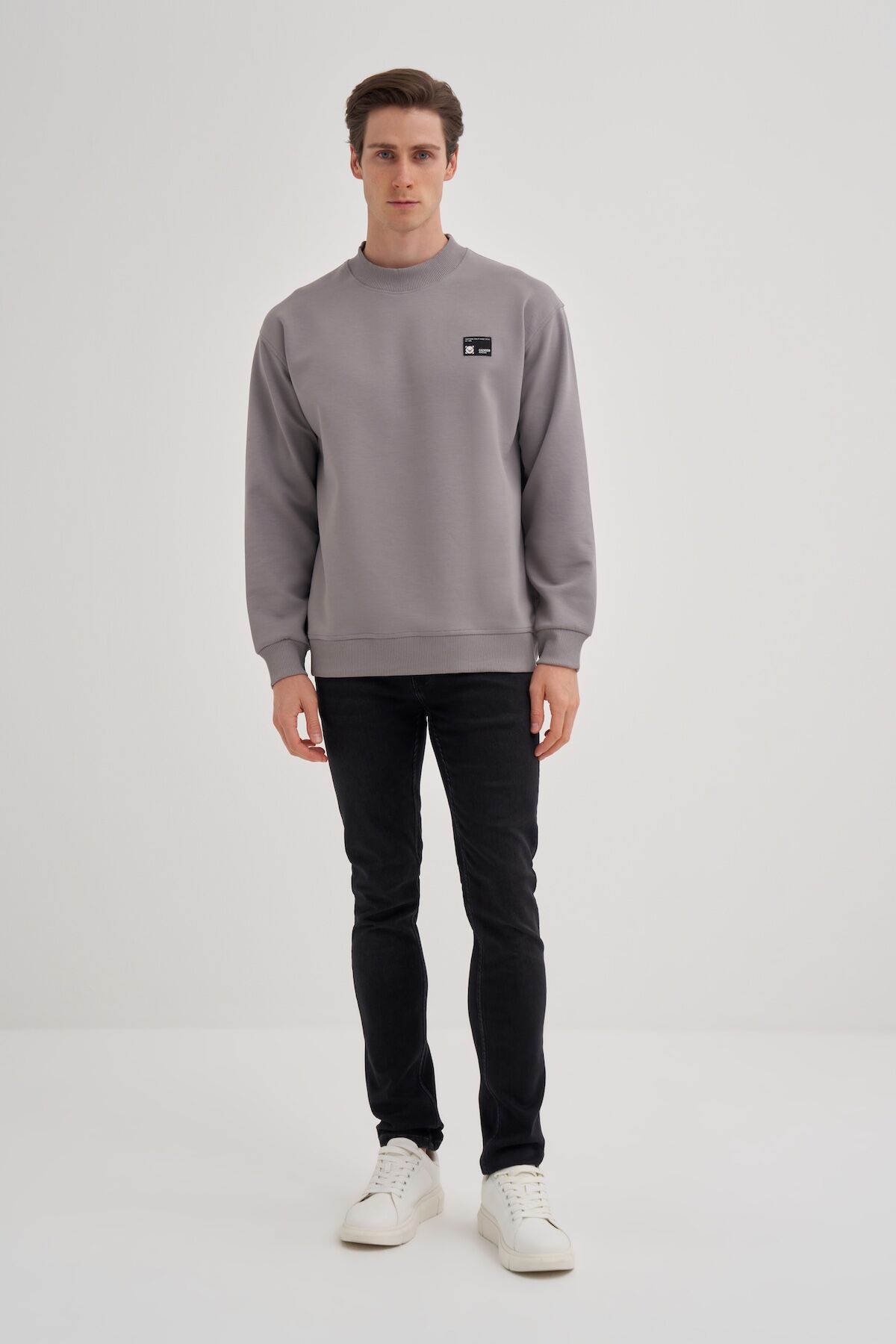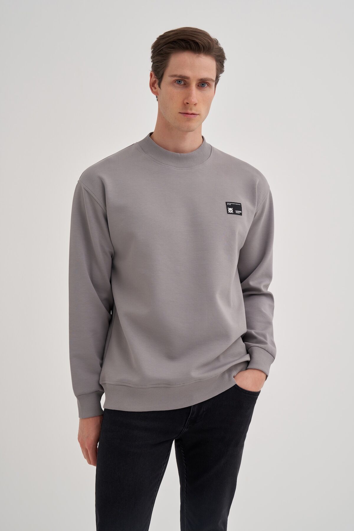 Cazador 52480 Gri Erkek Bisiklet Yaka Relax Fit 2 İplik Sweatshirt