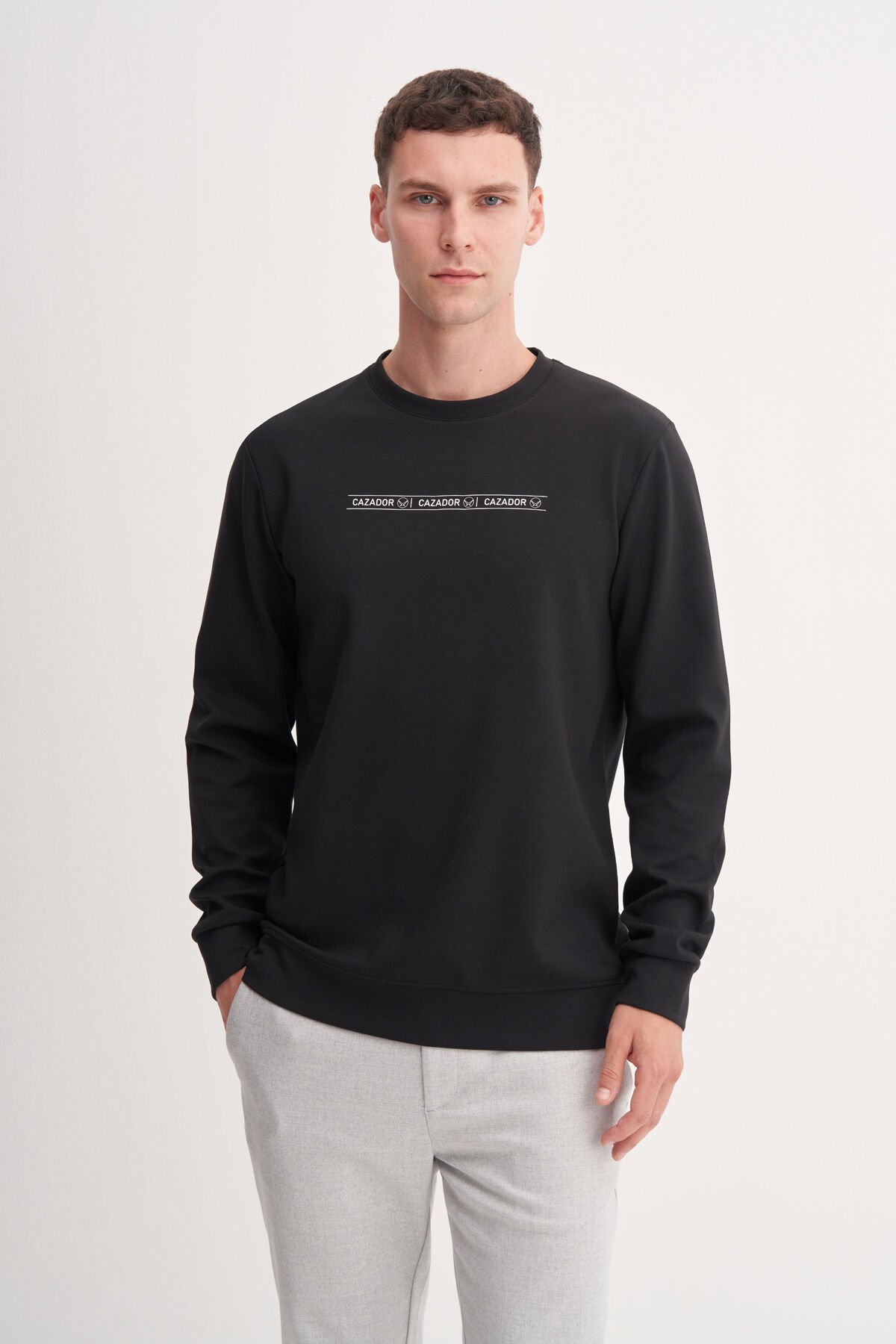 Cazador 53270 Siyah Erkek Bisiklet Yaka Önü Baskılı Regular Fit Sweatshirt