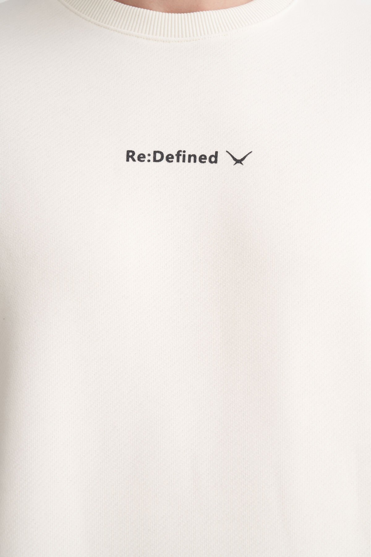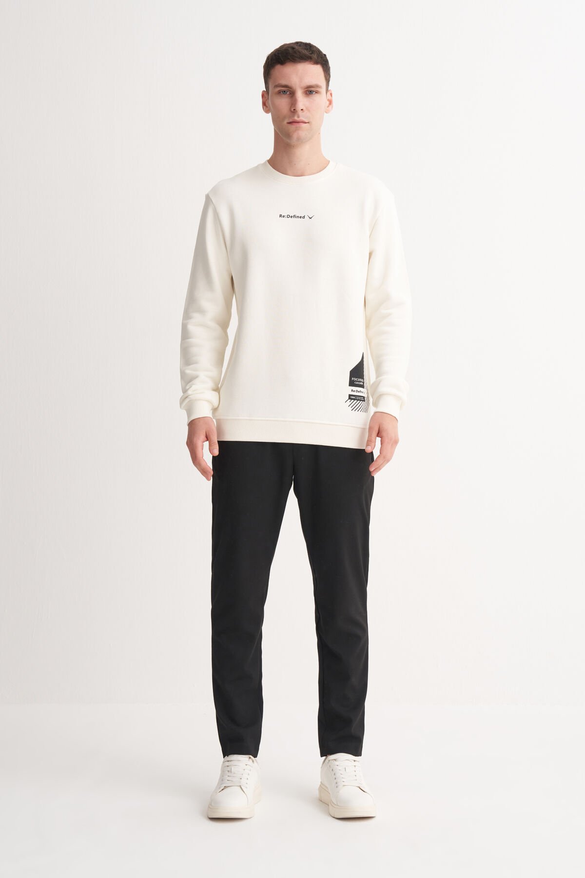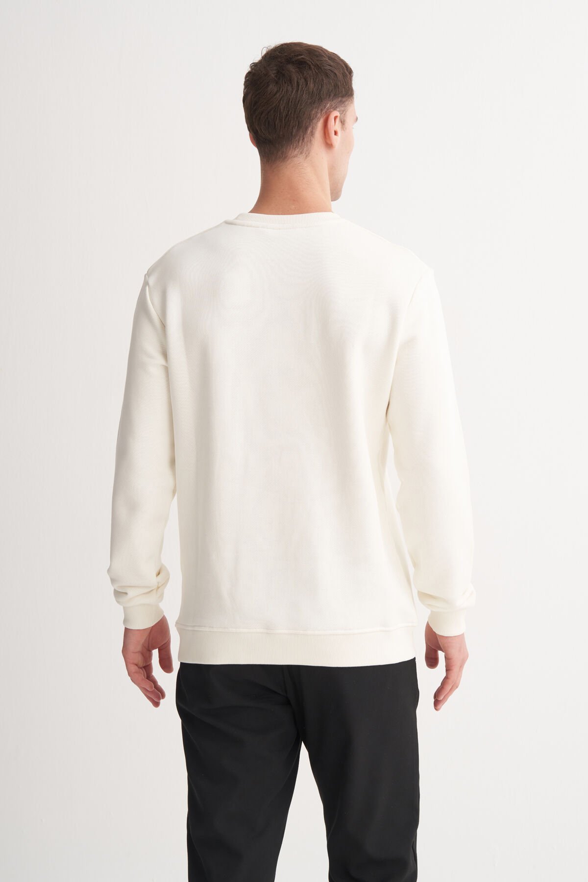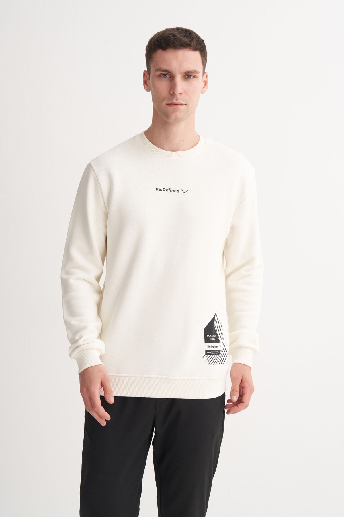 Cazador 53330 Ekru Erkek Bisiklet Yaka Regular Fit Baskılı Sweatshirt