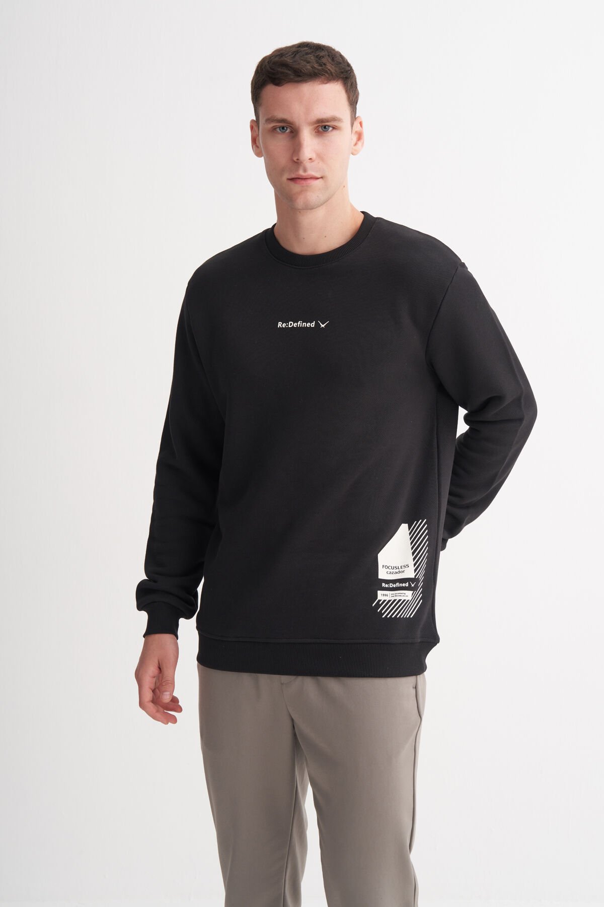 Cazador 53330 Siyah Erkek Bisiklet Yaka Regular Fit Baskılı Sweatshirt