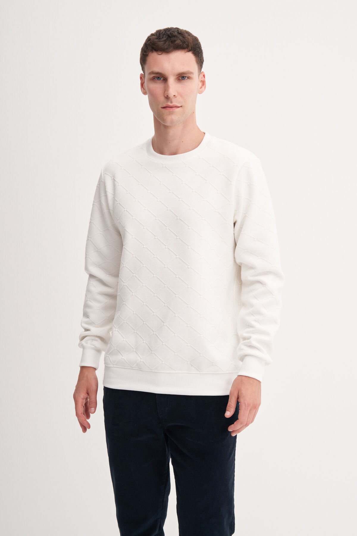 Cazador 53410 Ekru Erkek Bisiklet Yaka Kendinden Desenli Sweat