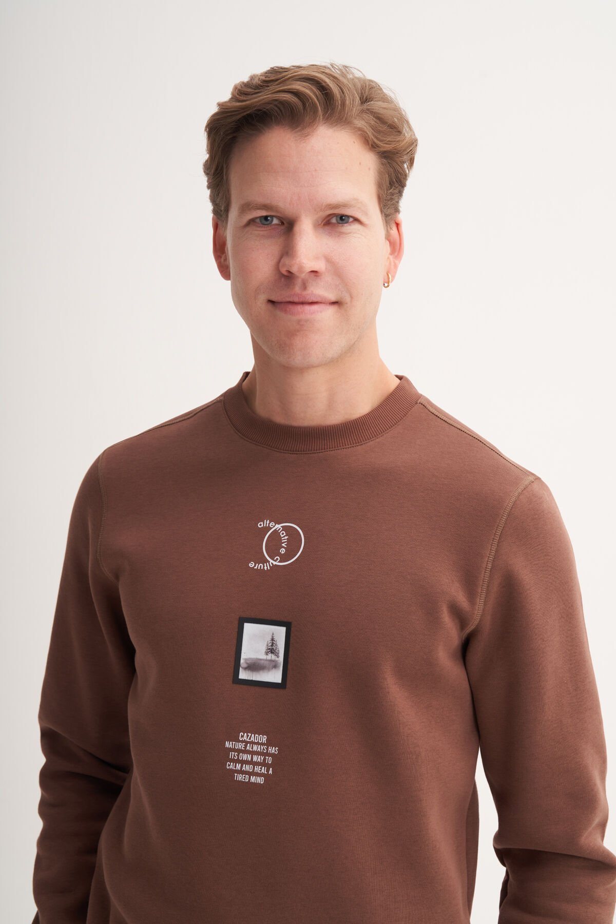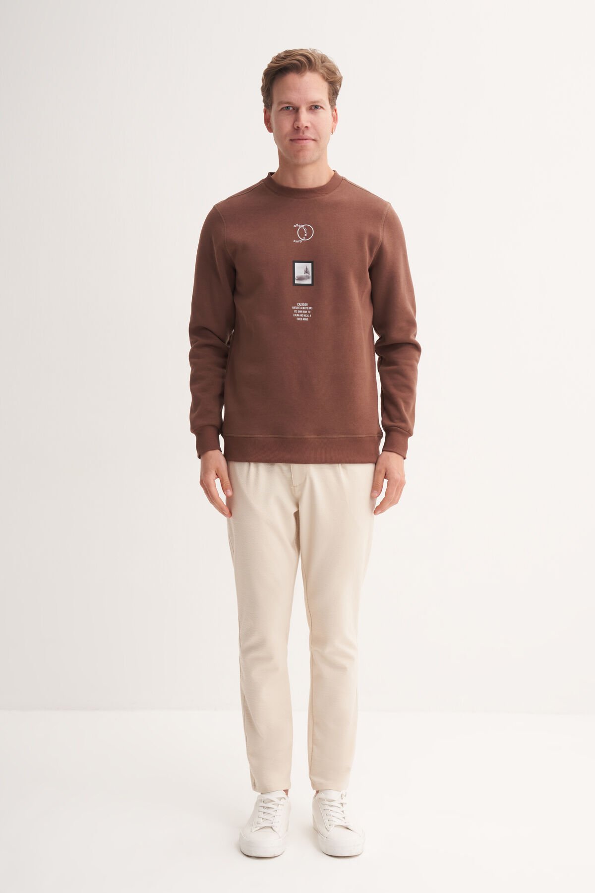 Cazador 53610 Kahverengi Erkek Bisiklet Yaka Baskılı Regular Fit Sweatshirt