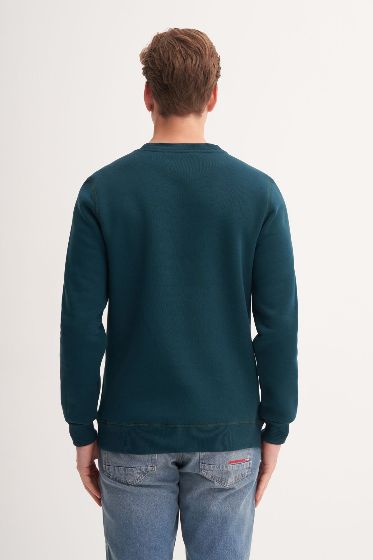 Cazador 53610 Petrol Erkek Bisiklet Yaka Baskılı Regular Fit Sweatshirt