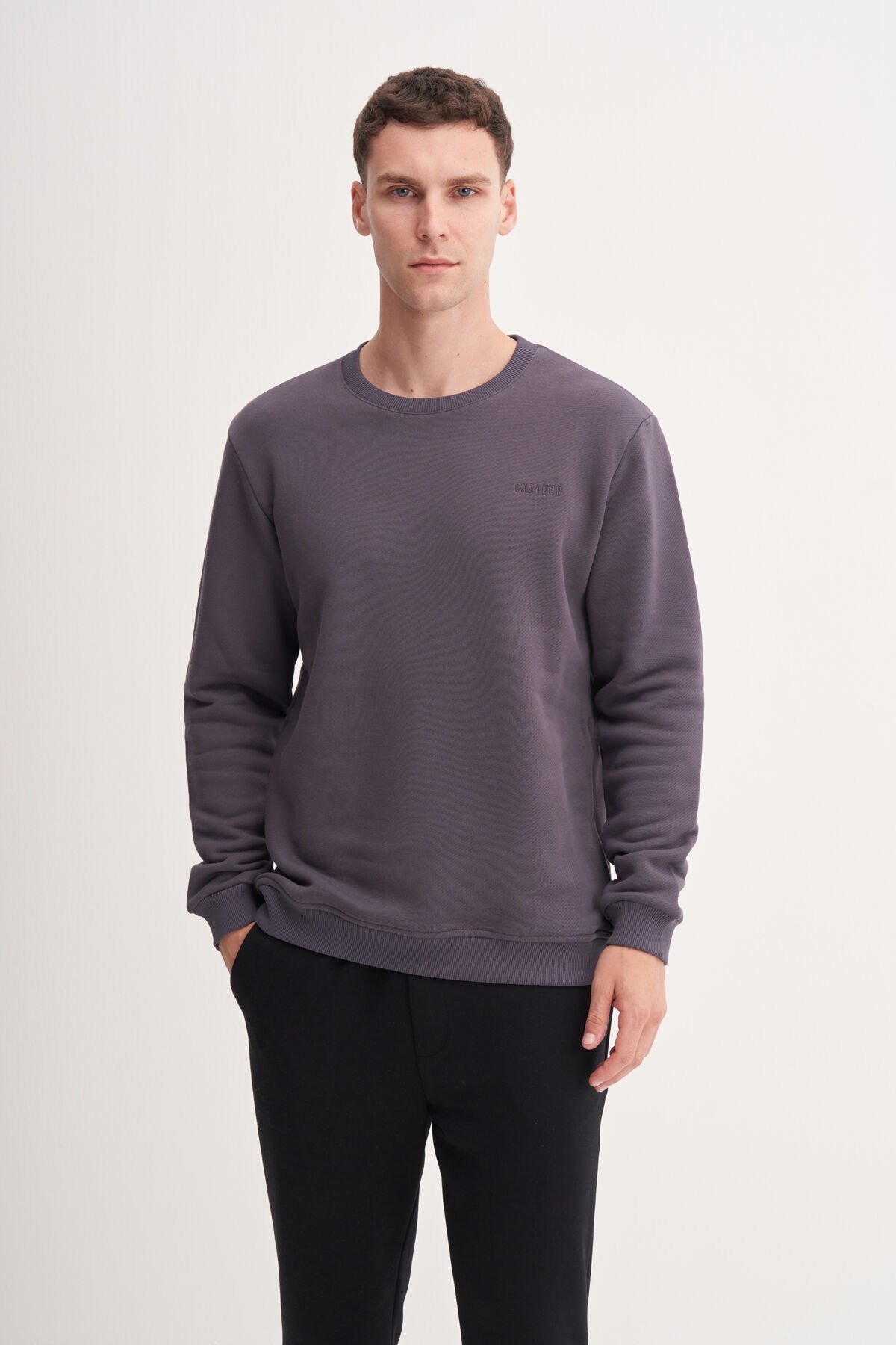 Cazador 54250 Antrasit Erkek Bisiklet Yaka 2 İplik Baskılı Sweatshirt