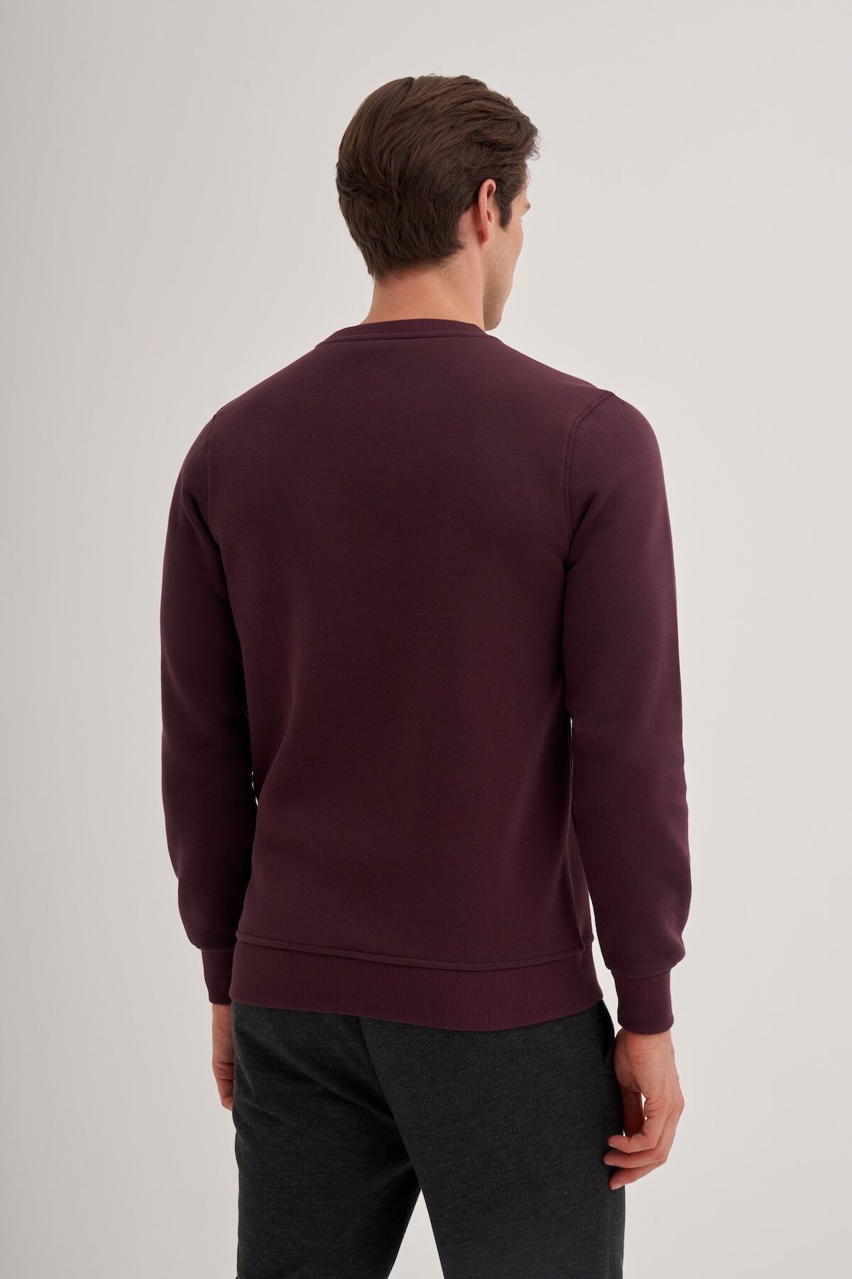 Cazador 56150 Vişne Erkek Bisiklet Yaka Şardonlu Slim Fit Sweatshirt