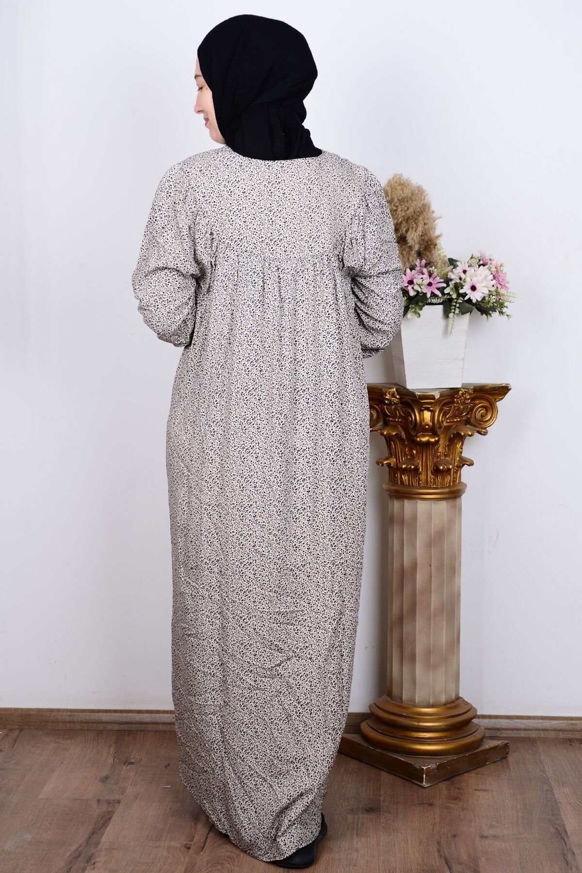 Ferace 8226 Bej Kadın Robalı Rahat Kesim Büyük Beden Yarı Düğmeli Çıtır Desenli Kolları Lastikli Elbise