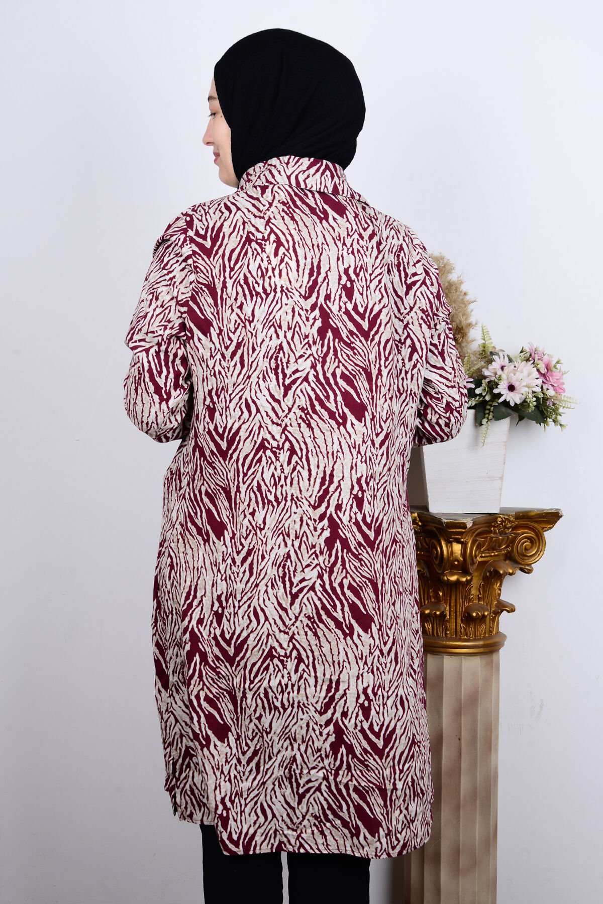 Ferace 8929-3 Vişne Kadın Rahat Kesim Büyük Beden Düğmeli Karşık Desenli Tunik