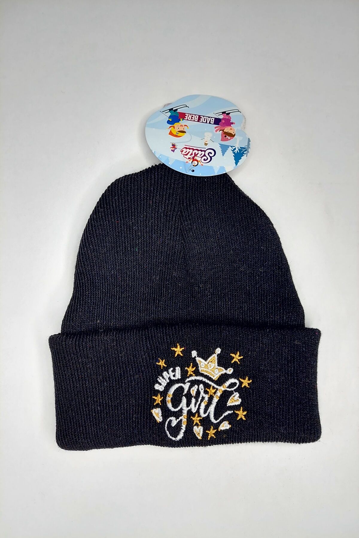 Hanece Kids Siyah Süper Girl Nakışlı Kız Çocuk Bere