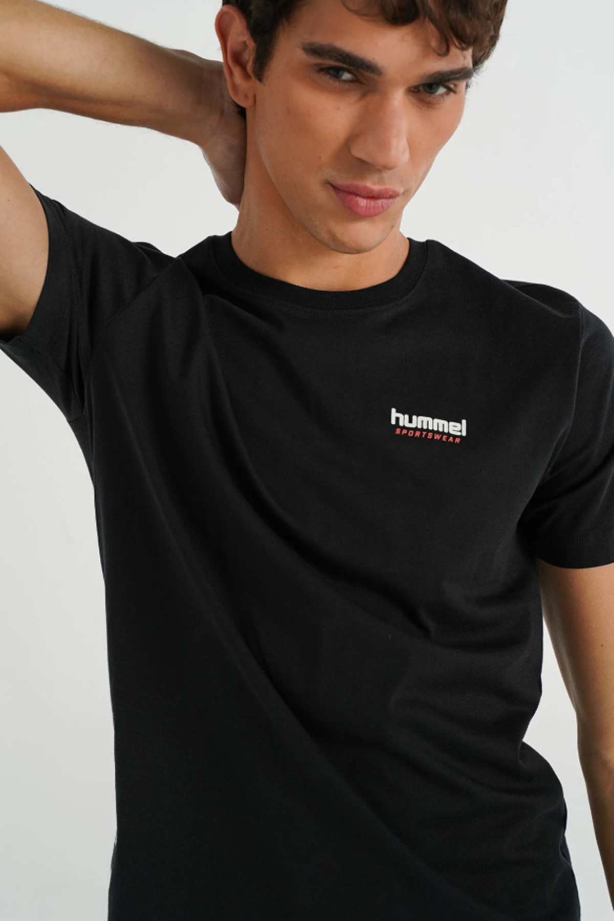 Hummel 912141-2001 HMLMEMBER Siyah Erkek Belden Ok İşaretli Logolu Göğüsten Kabartmalı Bisiklet Yaka Tshirt