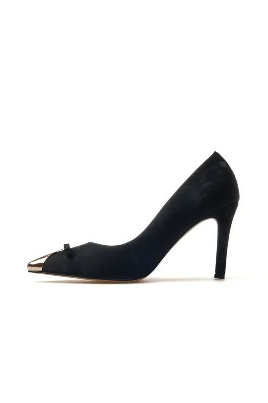 Kum K14525881 PREMIUM Siyah Kadın Gold Detaylı Süet Stıletto