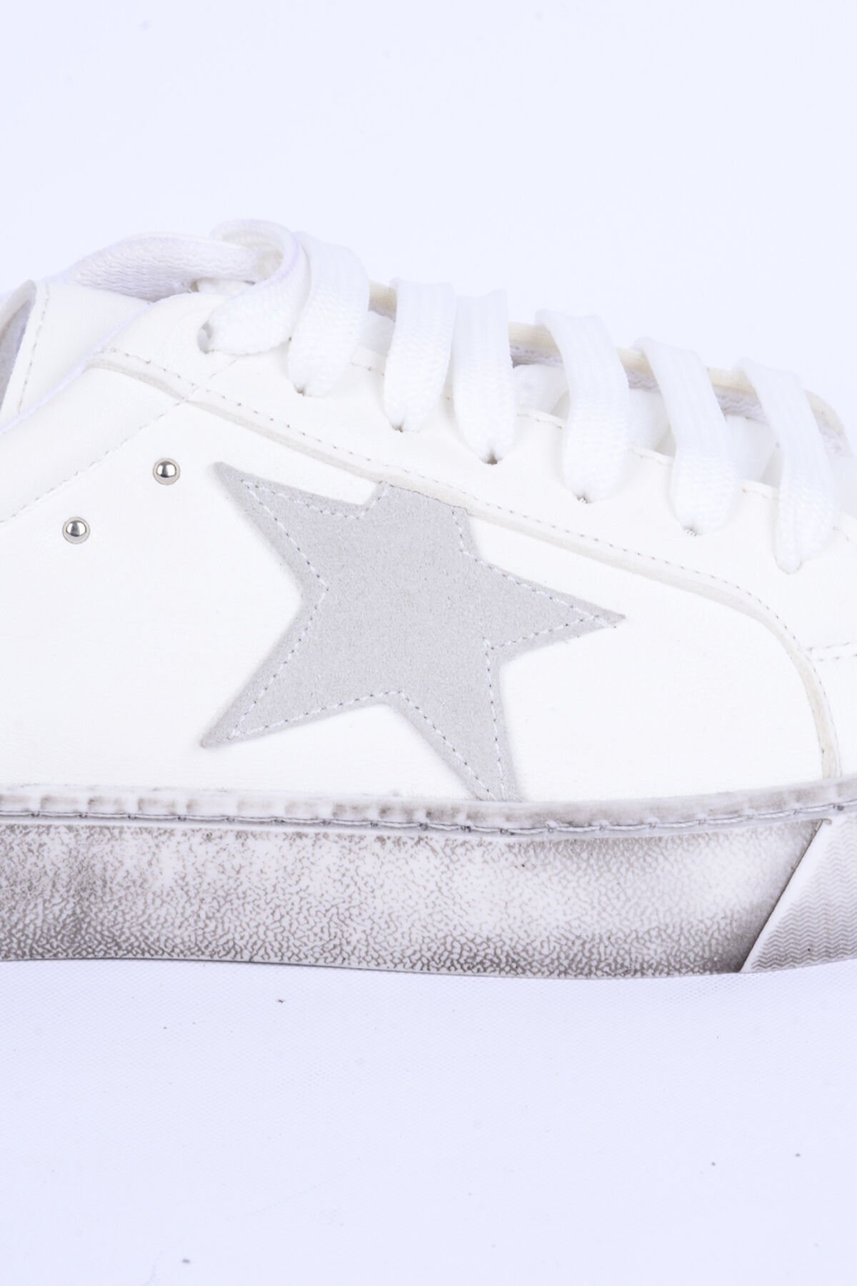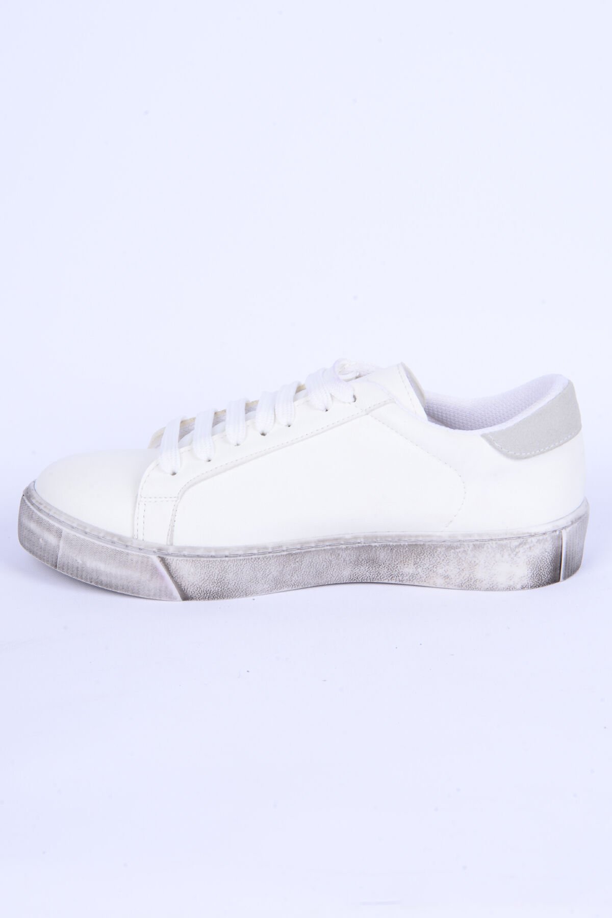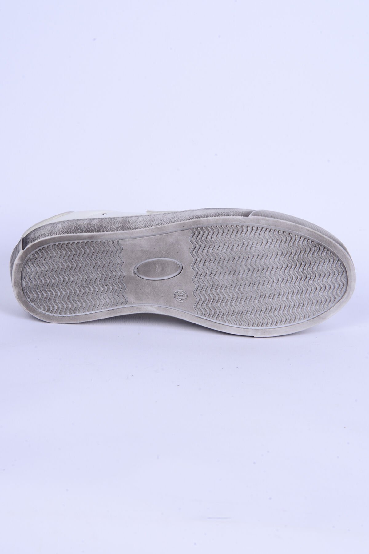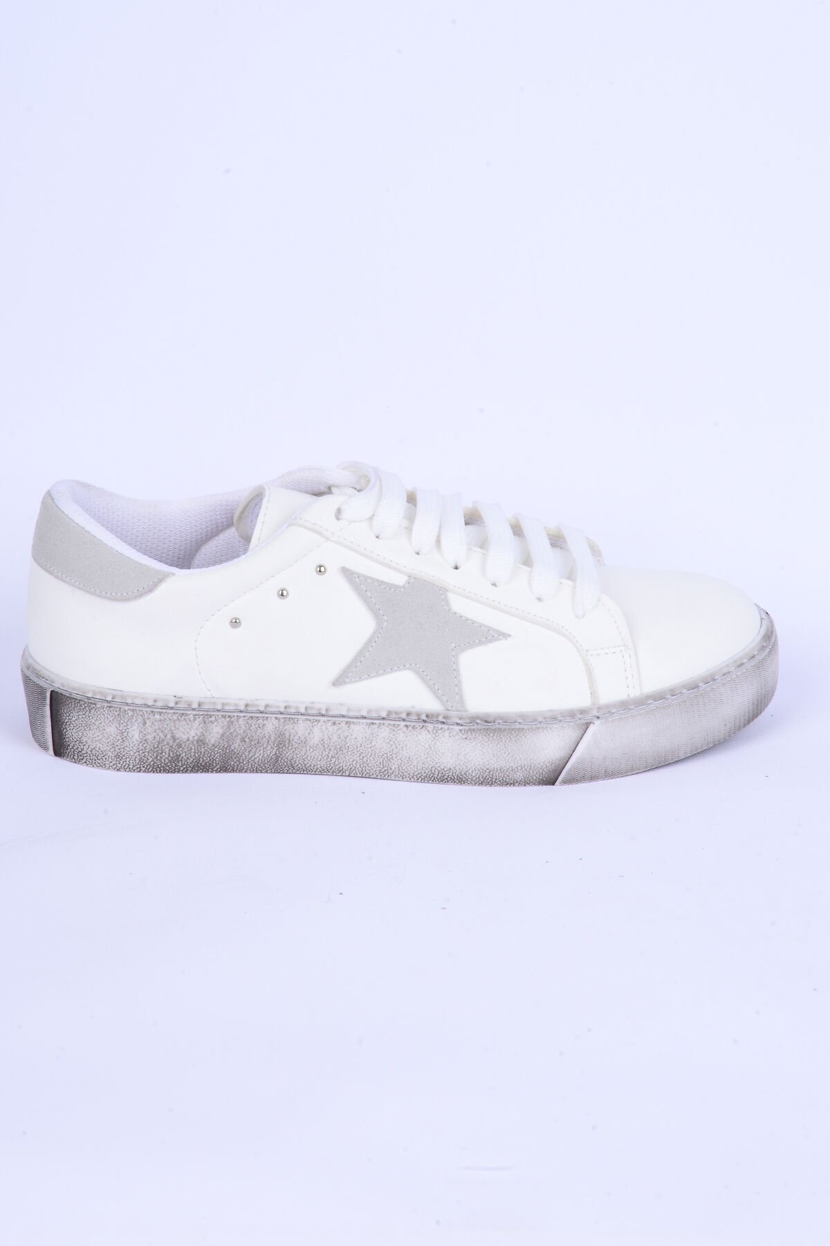 Kumm K851020 Deri Bağcıklı Ortopedik Taban Yıldız Desenli Kadın Günlük Beyaz-Gri Ayakkabı