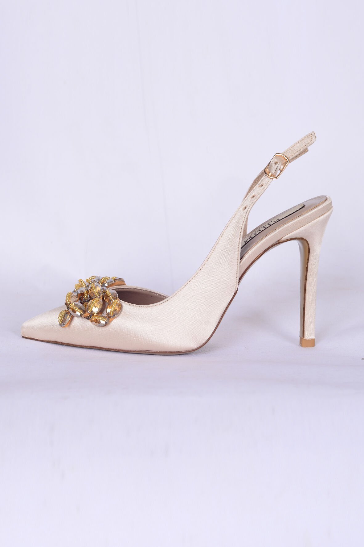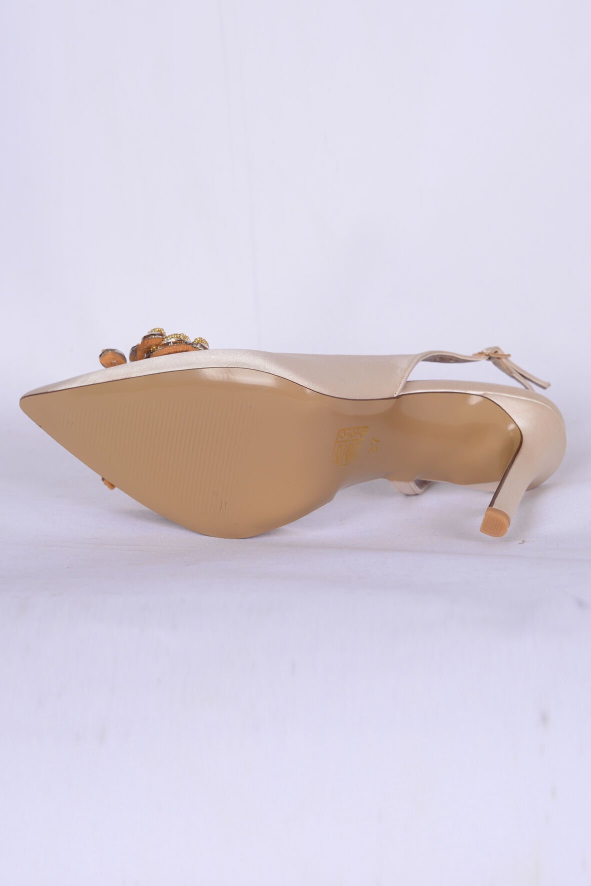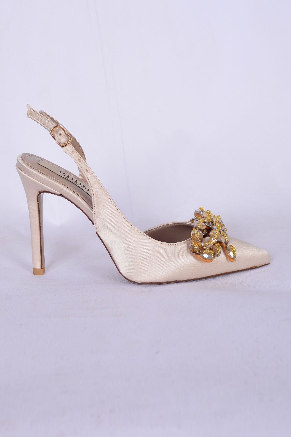 KUUM K25-350 PREMIUM Bej Kadın Önü Taş Detaylı Topuklu Ayakkabı