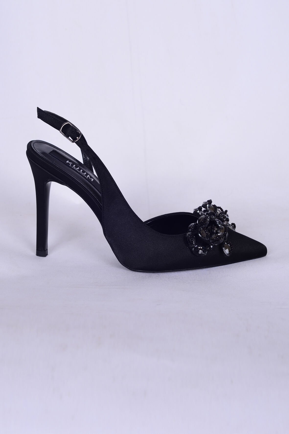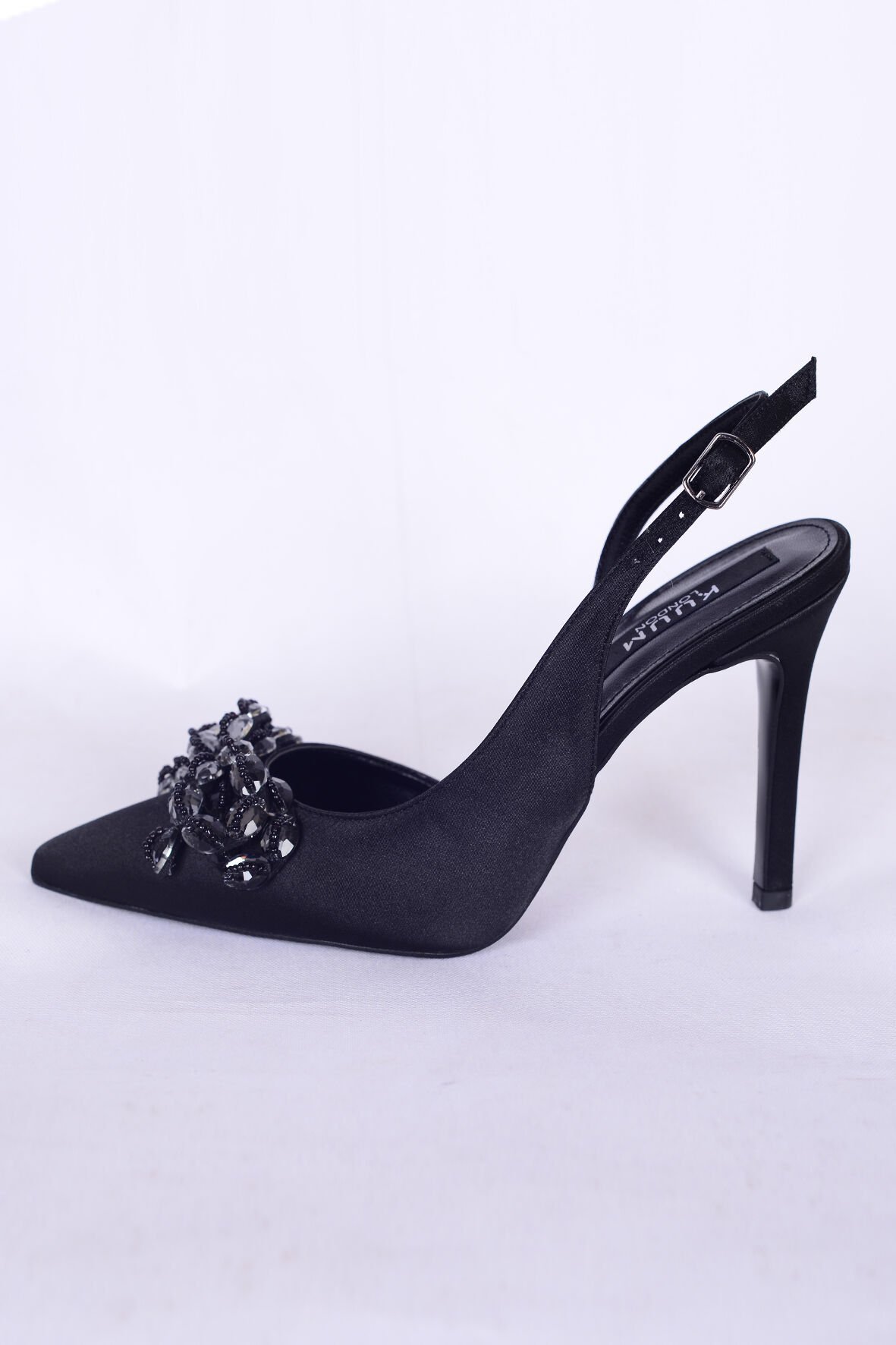 KUUM K25-350 PREMIUM Siyah Kadın Önü Taş Detaylı Topuklu Ayakkabı