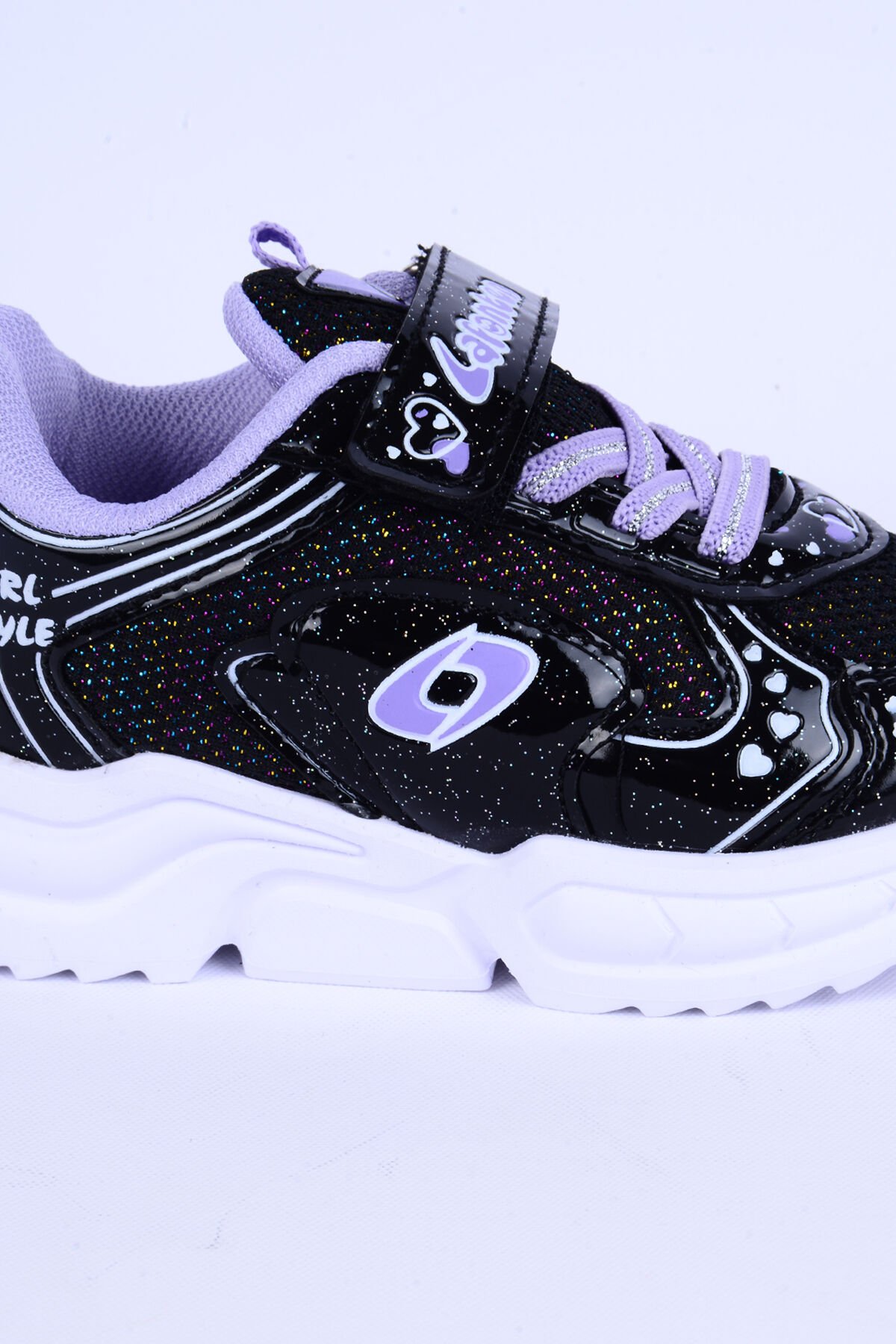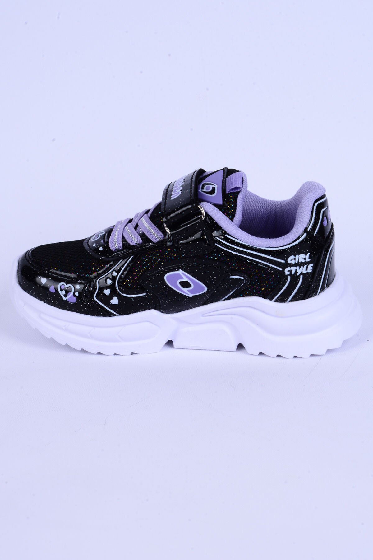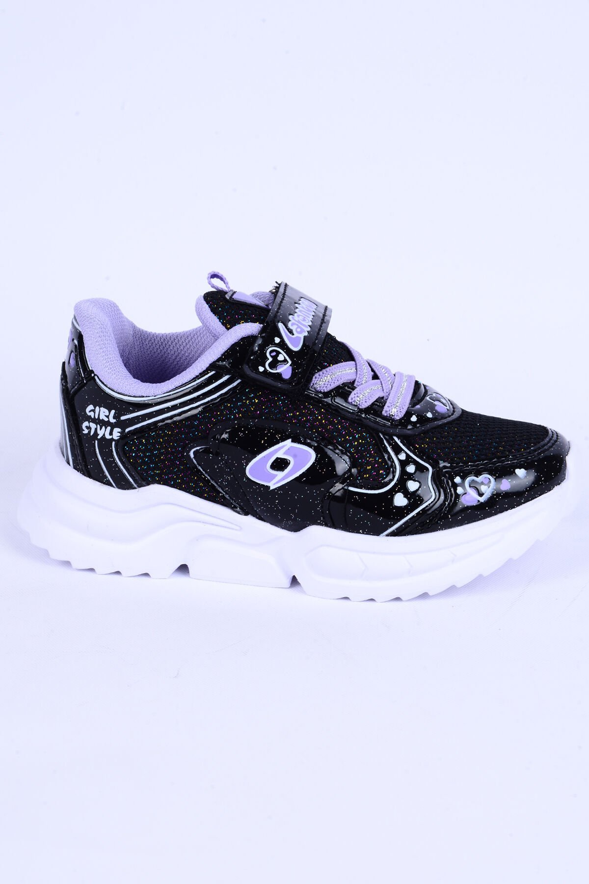 Lafonten 732 P Fileli Deri Detaylı Rahat Taban Esnek Hafif Siyah-Mor Günlük Kız Çocuk Ayakkabı