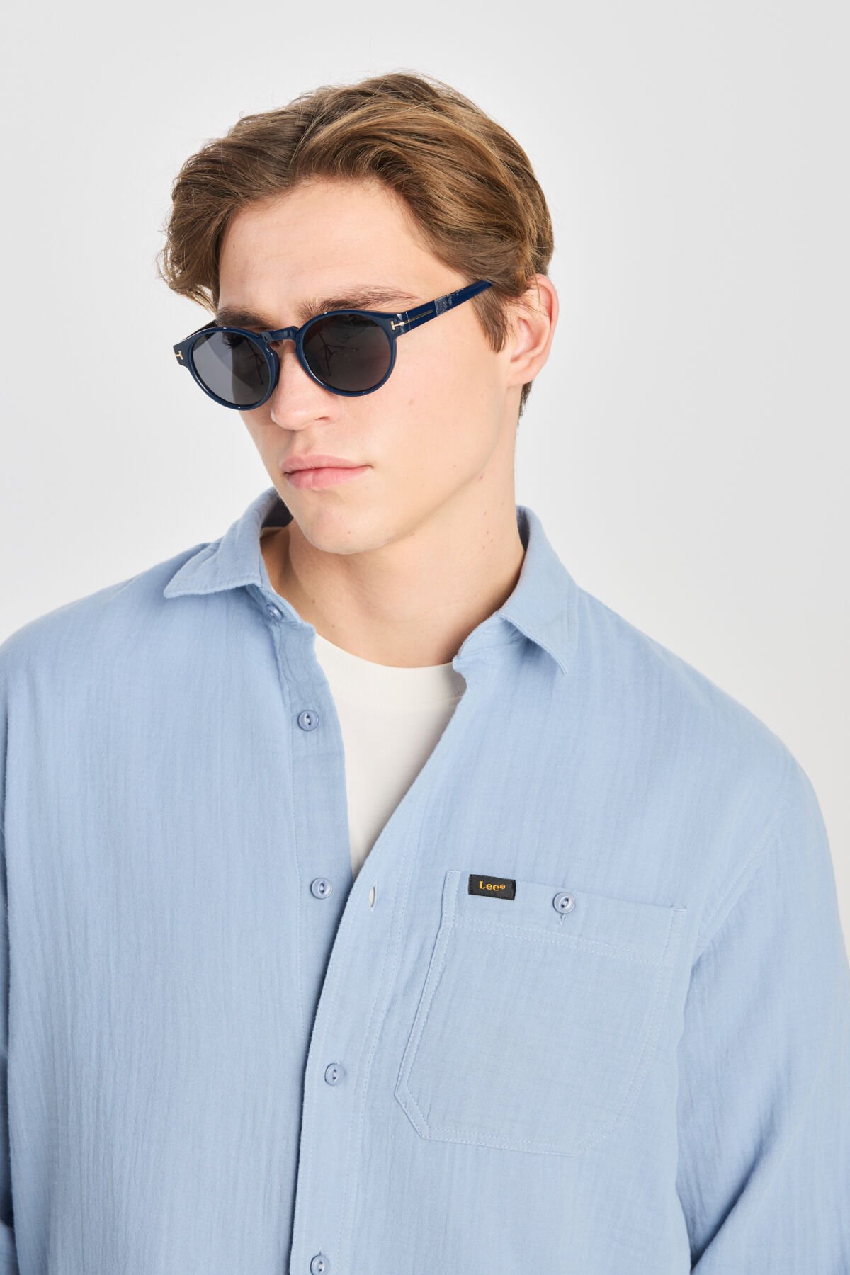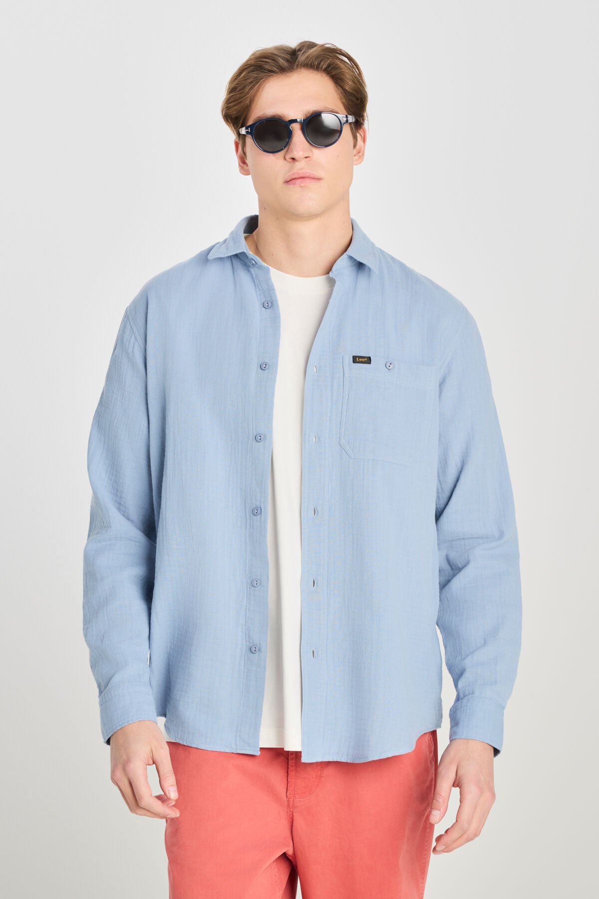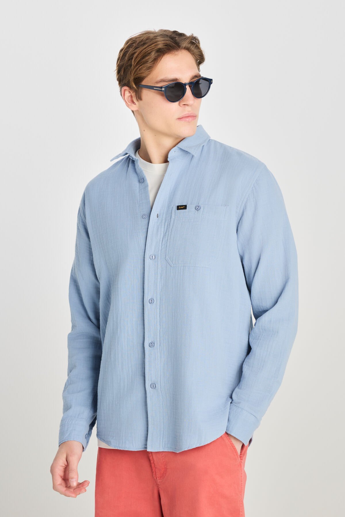 Lee - %100 Pamuk Relaxed Fit Geniş Kesim Mavi Müslin Gömlek - L66N205295400_400