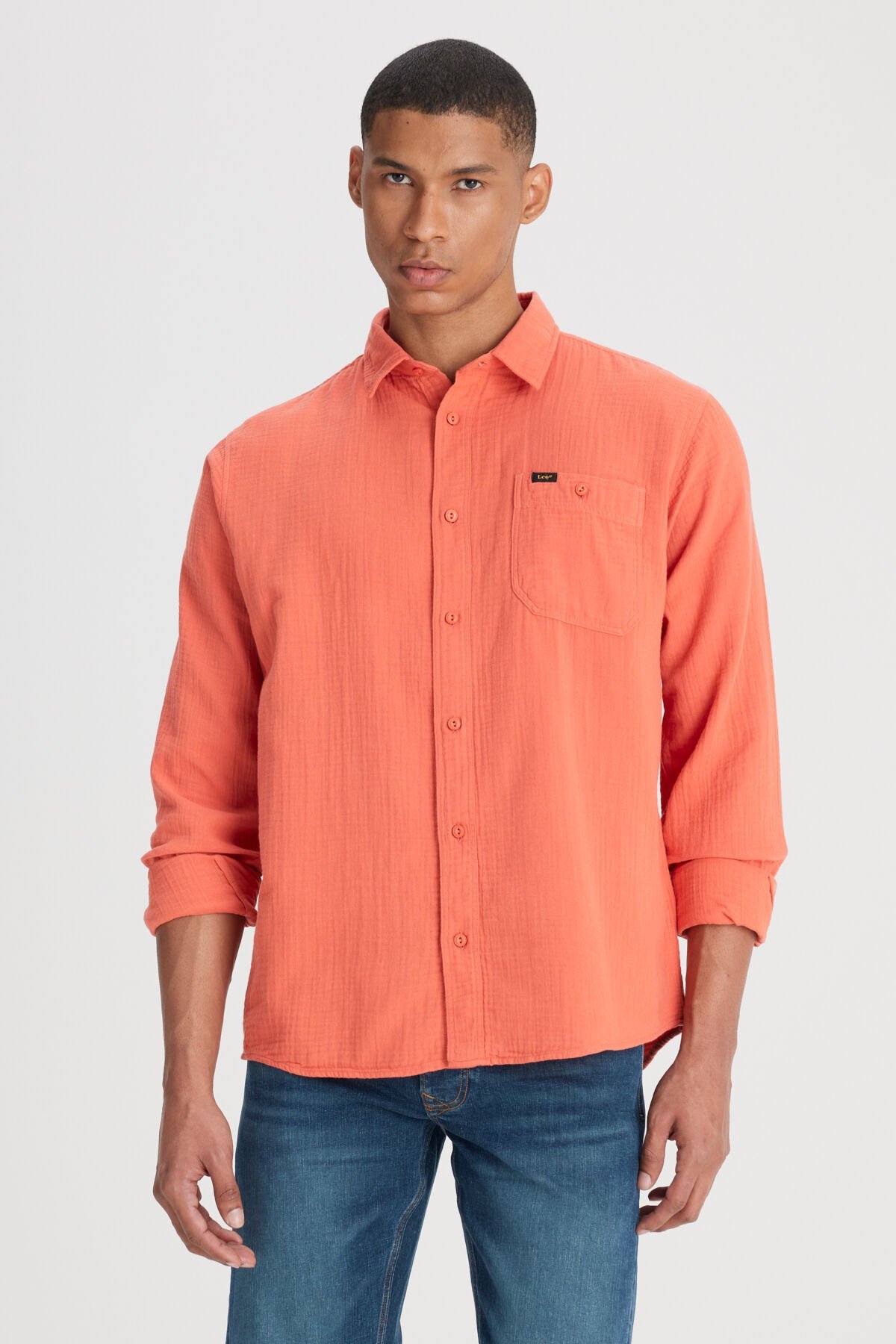 ee - Relaxed Fit Geniş Kesim %100 Pamuk Turuncu Gömlek - L66N205295B50_B50