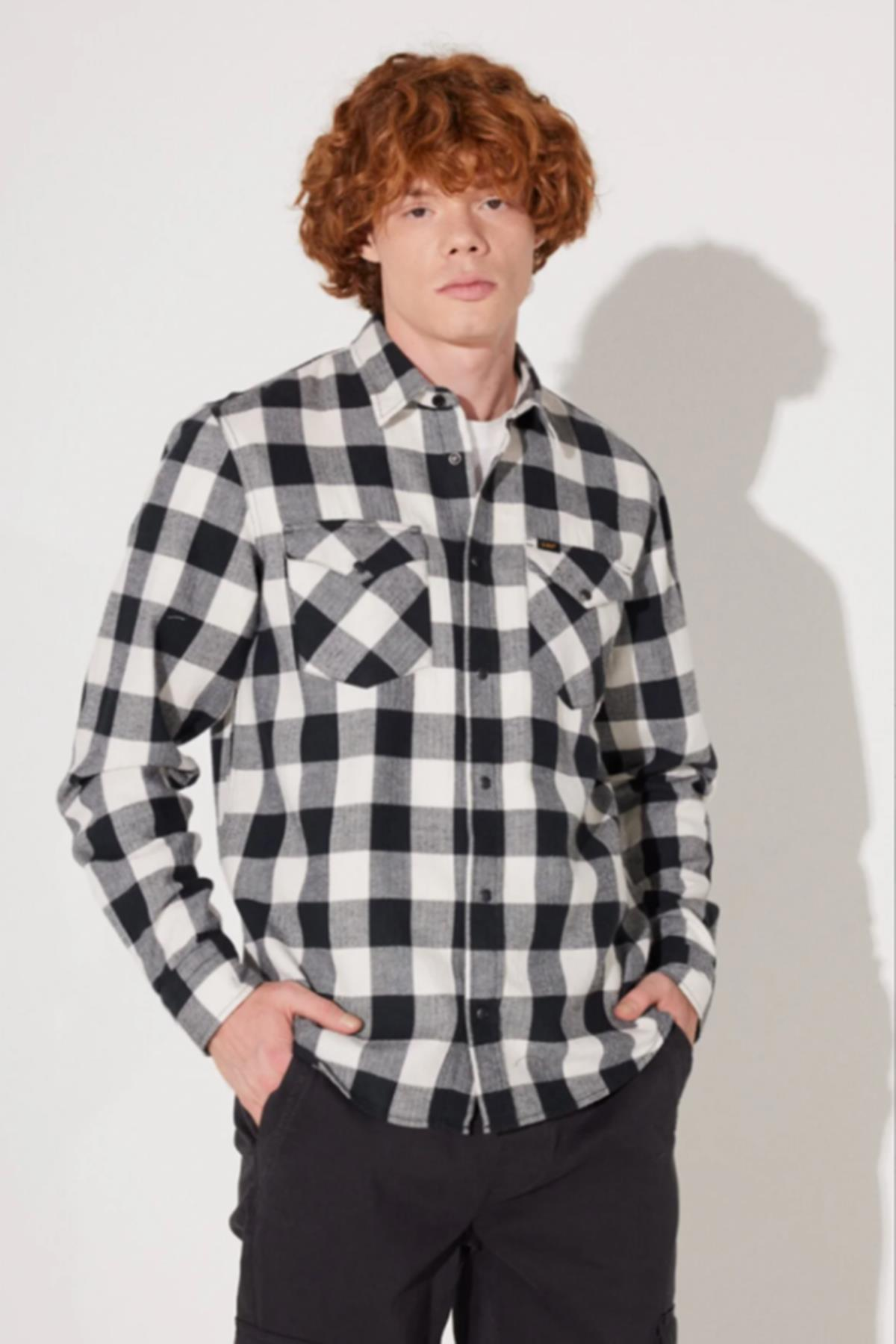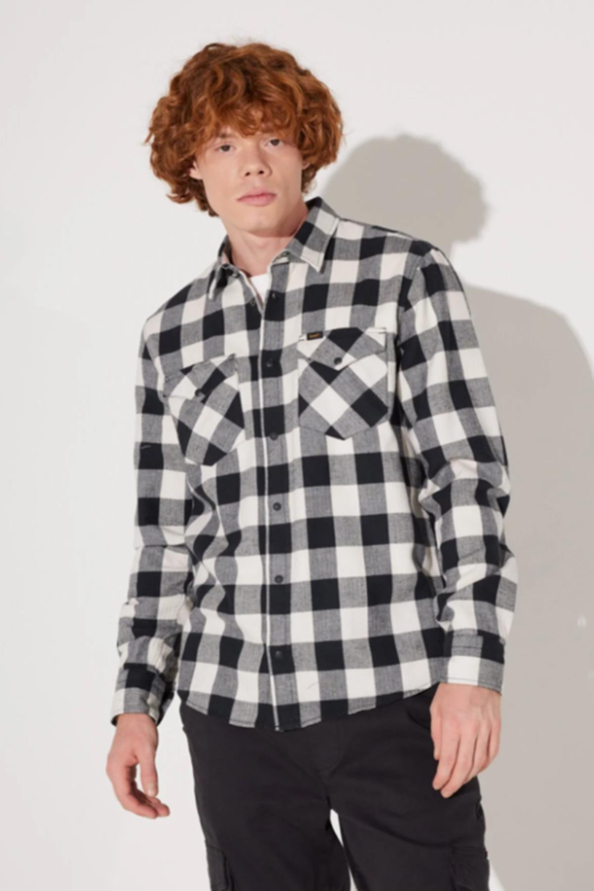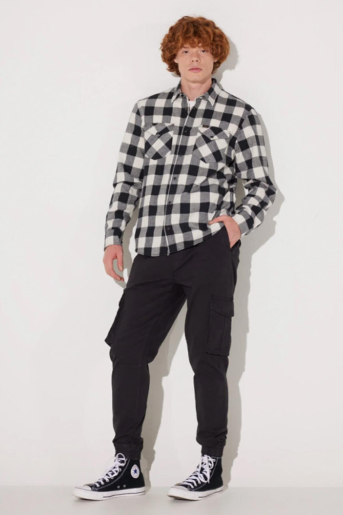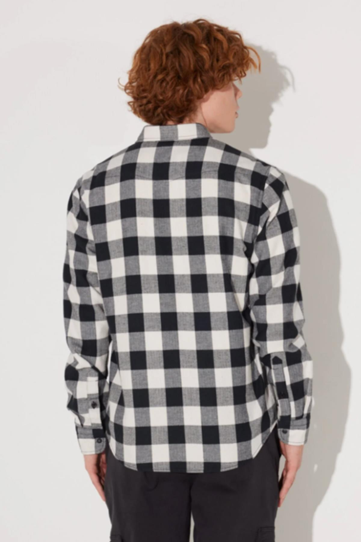 Regular Fit Normal Kesim %100 Pamuk Ekose Siyah Krem Uzun Kollu Gömlek