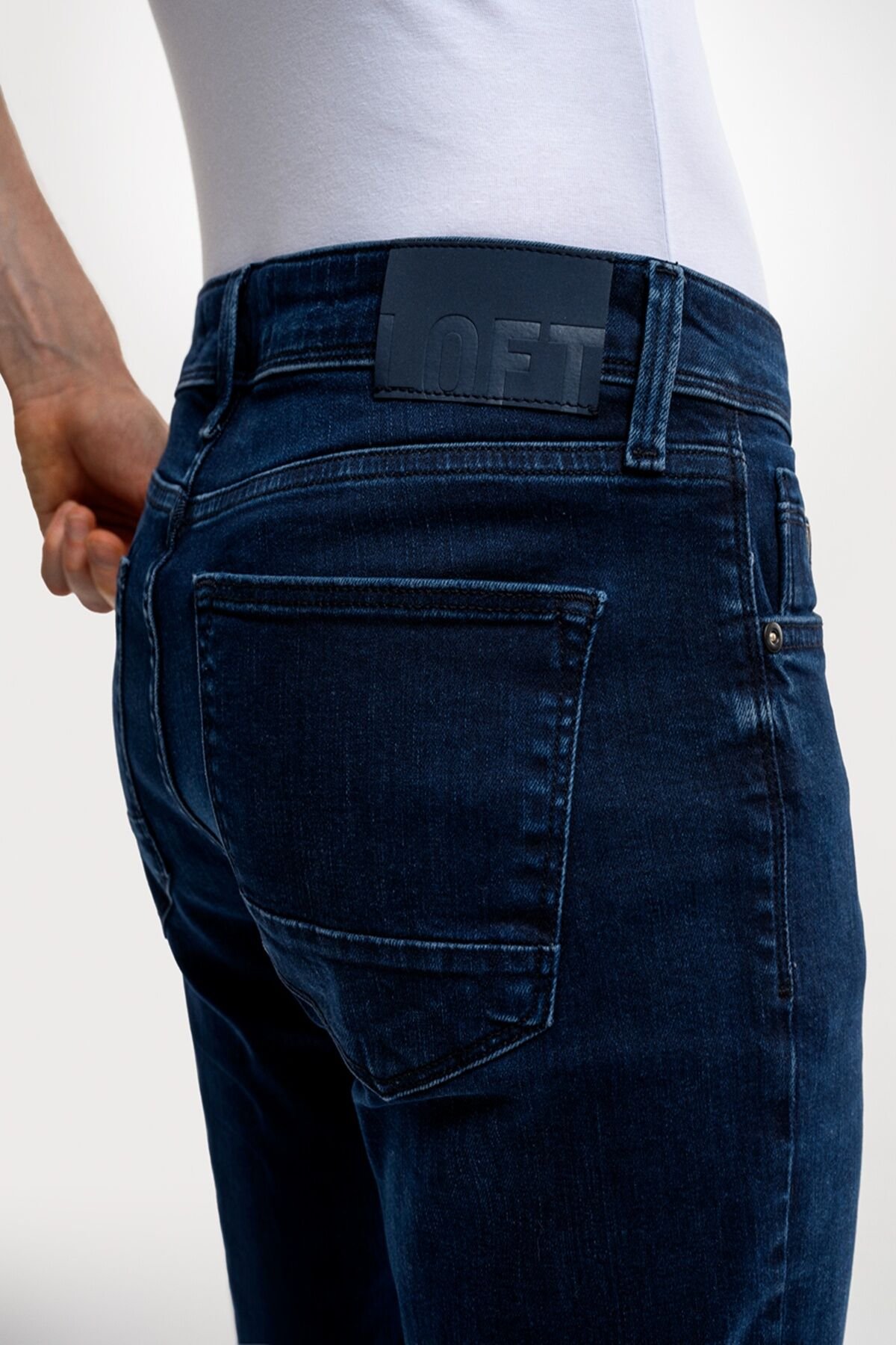 Loft 2035717 Koyu Mavi Erkek Justin Skinny Fit Basic Düşük Bel Daralan Paça Dar Kesim %98 Pamuk Kot Pantolon