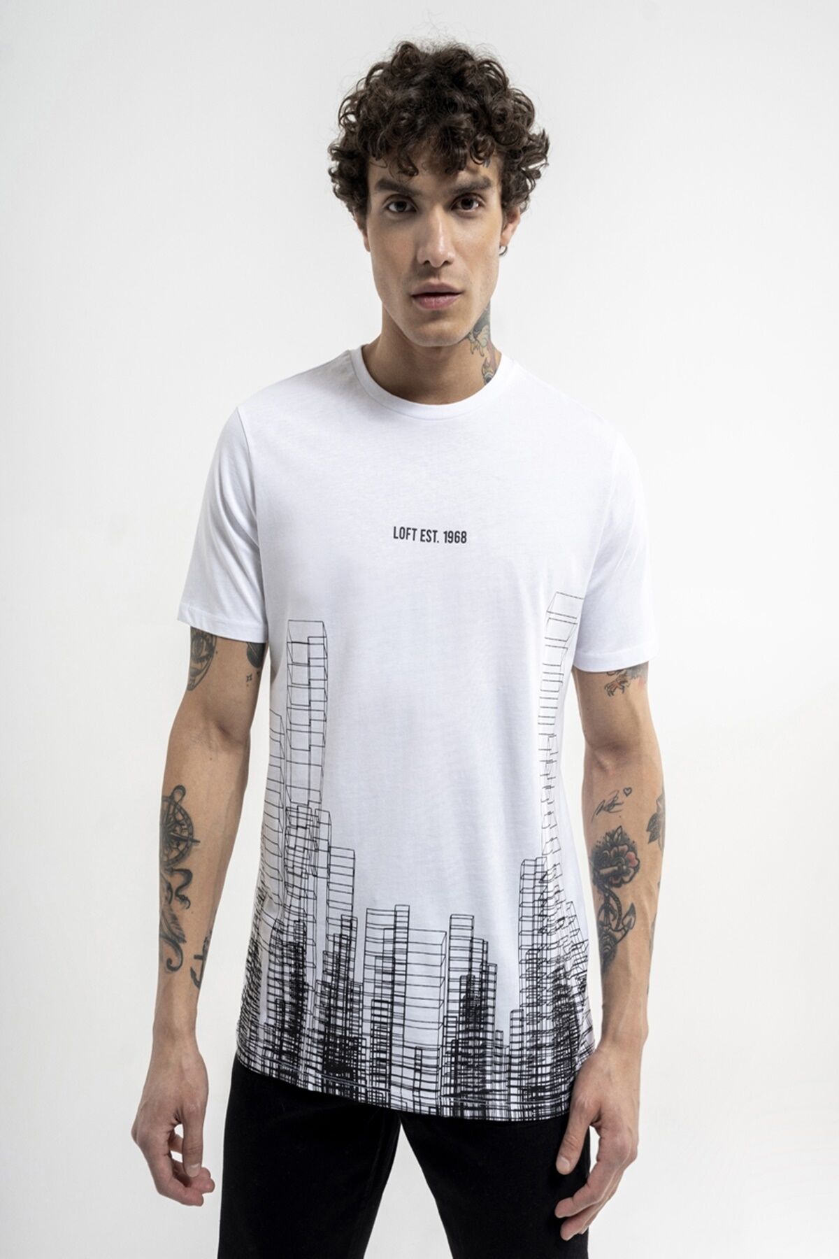 Loft 2035810 Beyaz Erkek Regular Fit Bisiklet Yaka Normal Kesim Loft Logo Yazı Baskılı Önü Desenli %100 Pamuk Tşört