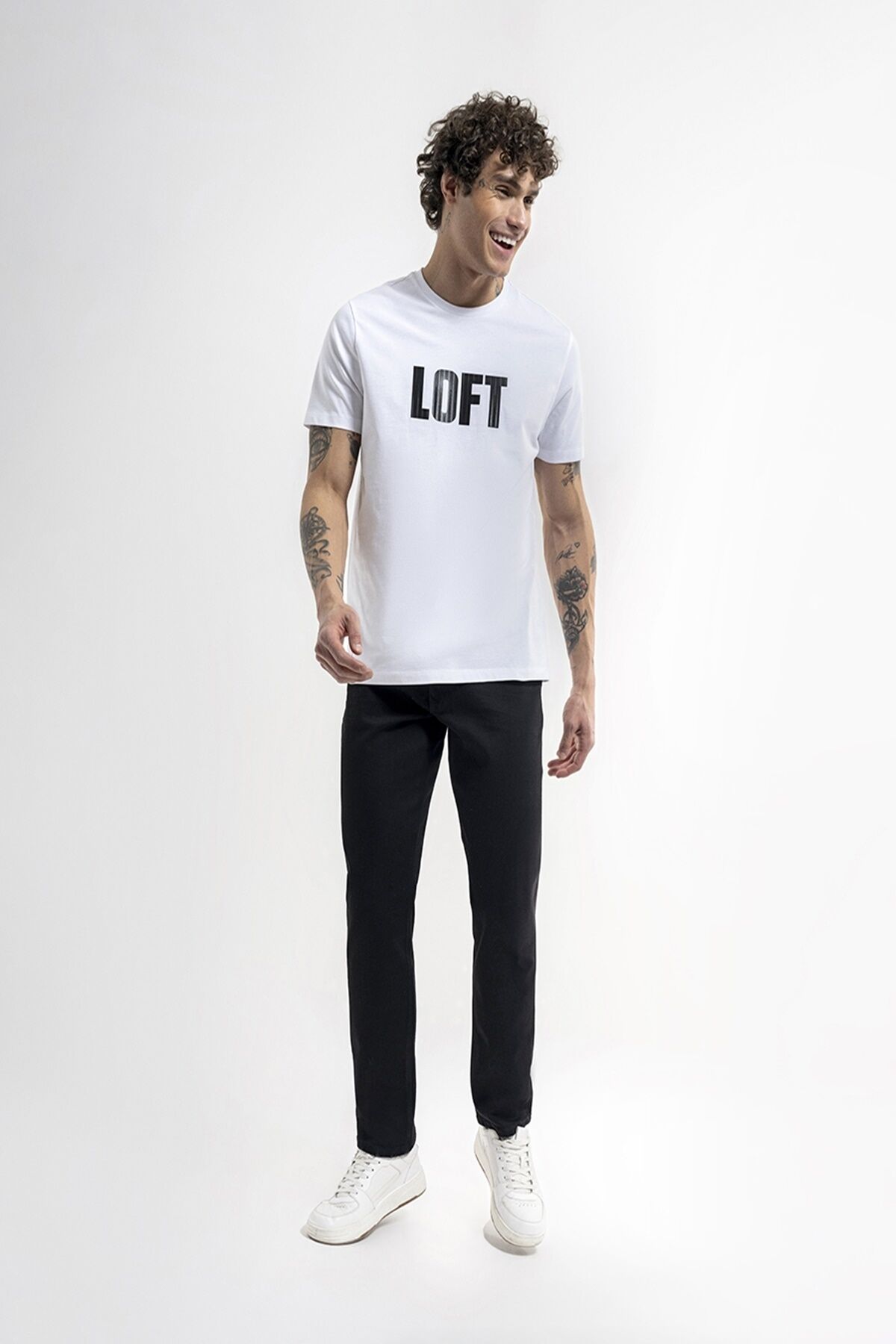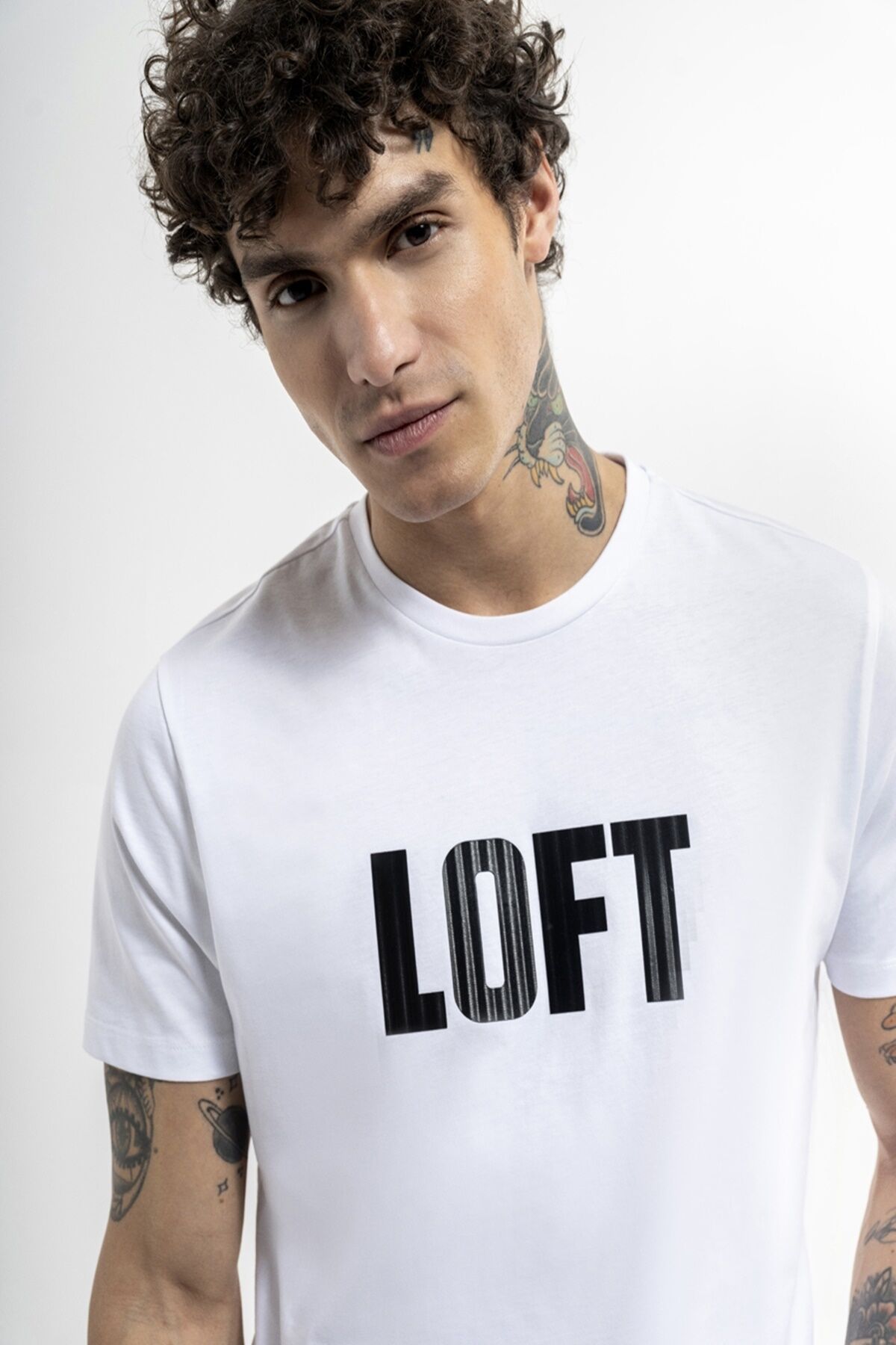 Loft 2036411 Beyaz Erkek Regular Fit Bisiklet Yaka Normal Kesim Loft Logo Yazı Baskılı %100 Pamuk Tşört