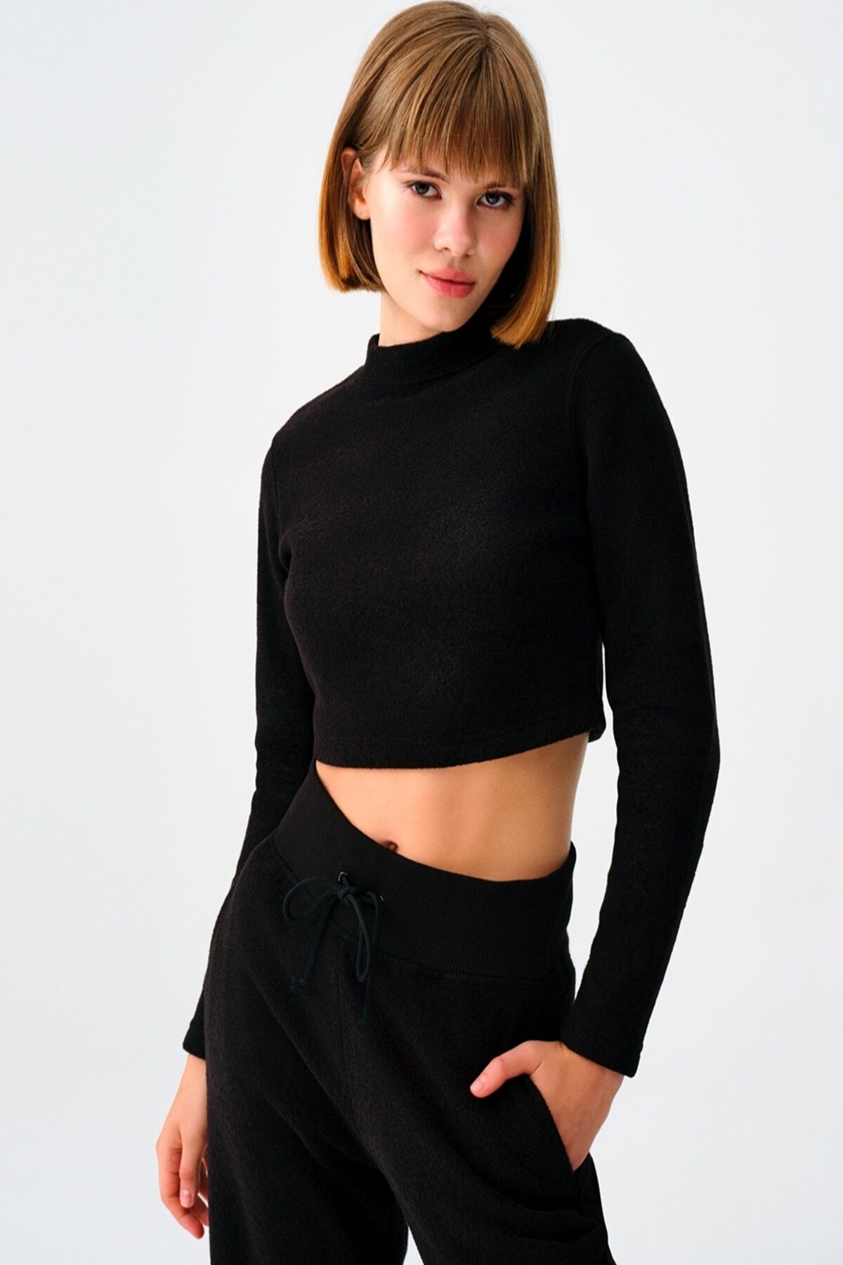 ÜRÜN KODU :LF2038227_Q1.V1_BLK KUMAŞ ÖZELLİK :%70 Poliester %30 Viskon Fit :Crop Kol Tipi :Uzun Kol Tema :ESSENTIALS