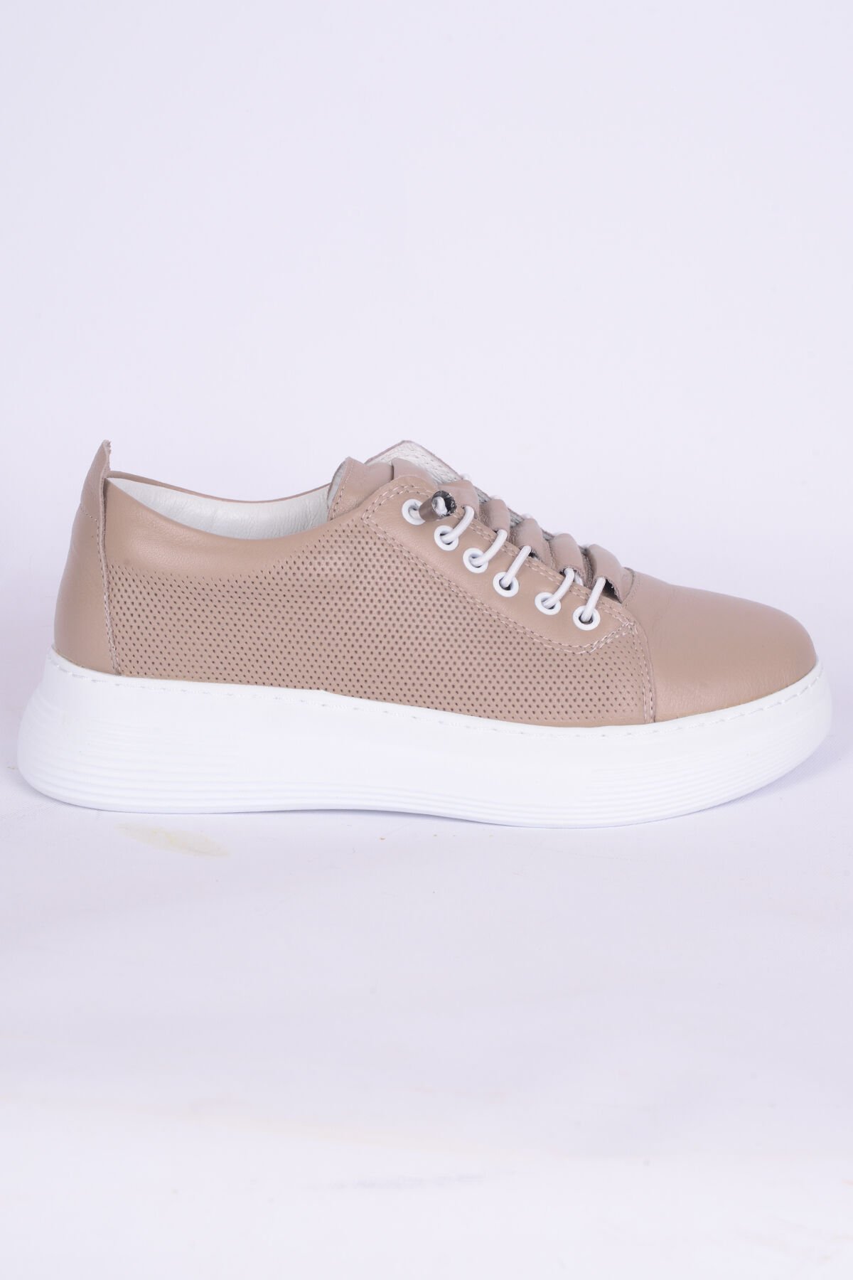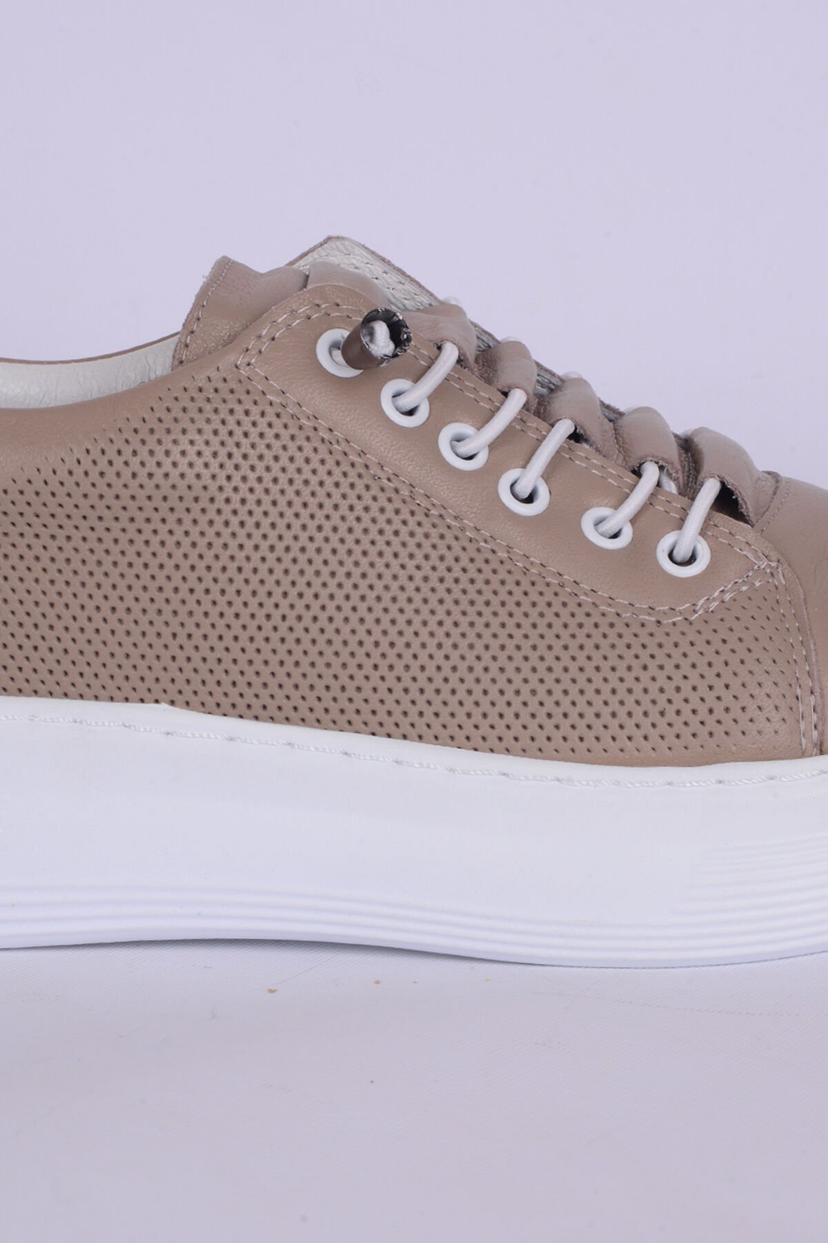 New Onix 035 Deri Ortopedik Taban Bağcıkları Lastikli Desenli Hafif Rahat Esnek Vizon Günlük Kadın Ayakkabı
