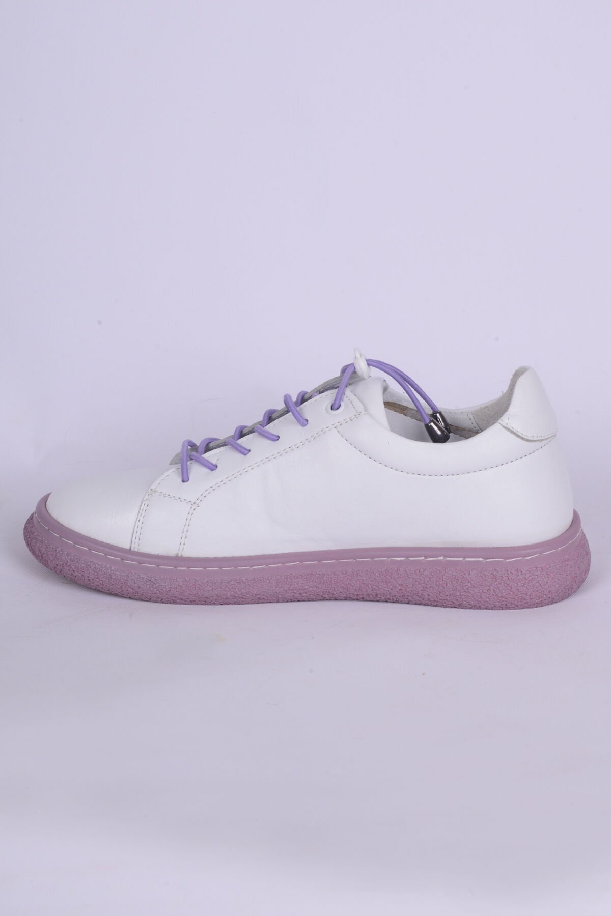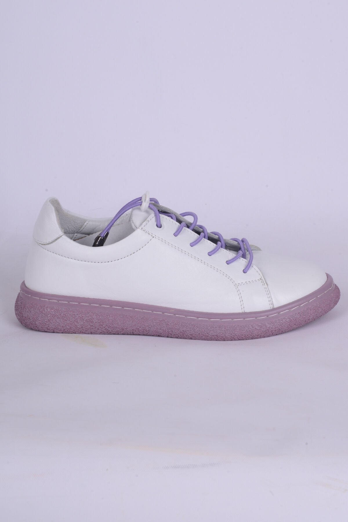 New Onix 037 Deri Ortopedik Taban Bağcıkları Lastikli Hafif Rahat Esnek Lila Günlük Kadın Ayakkabı