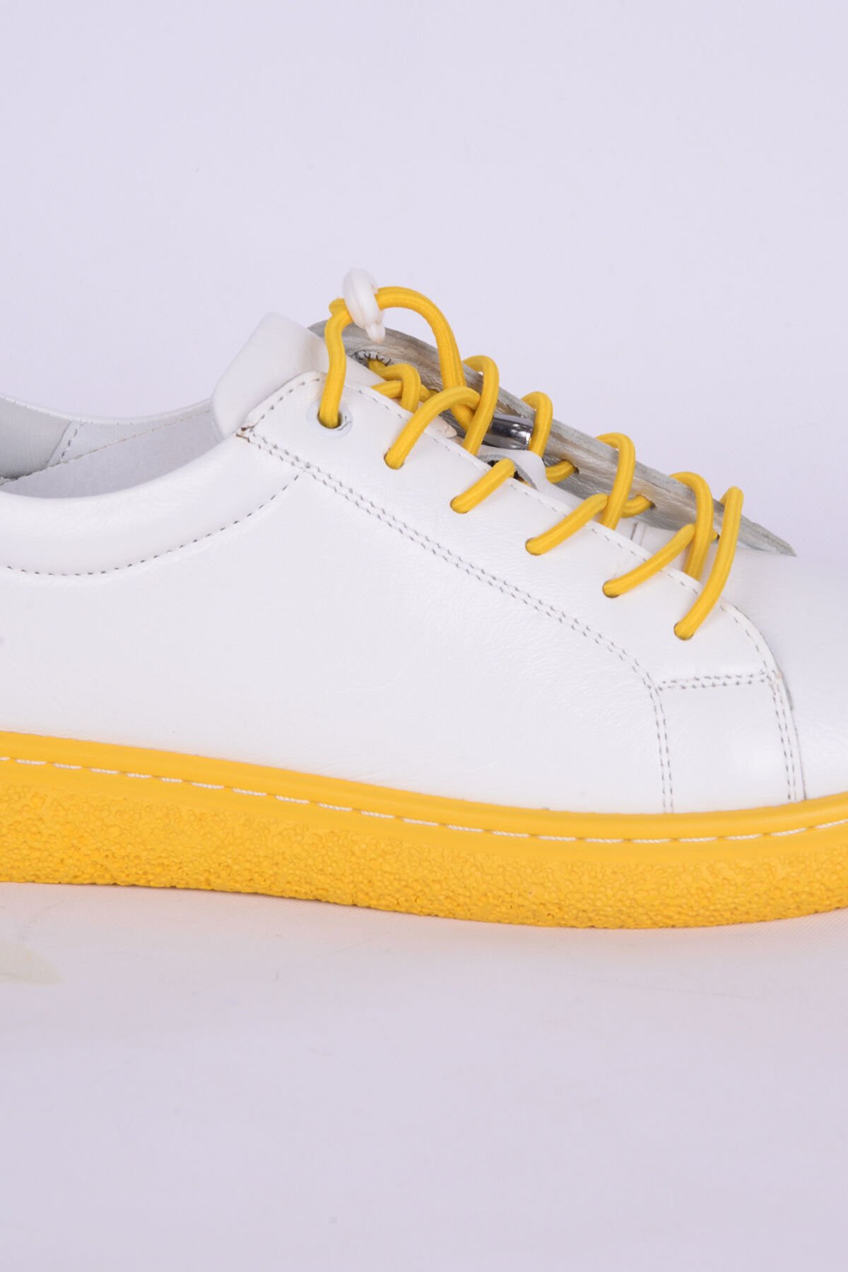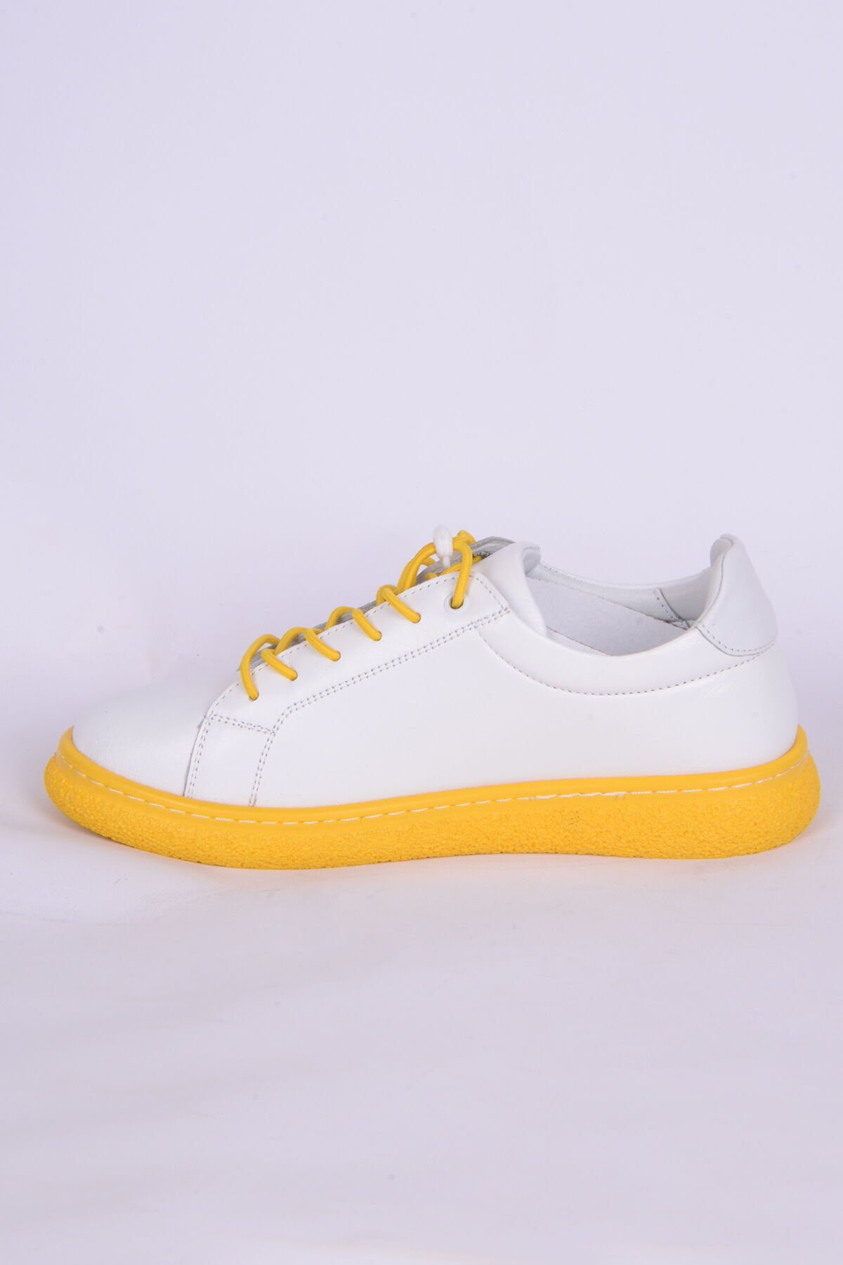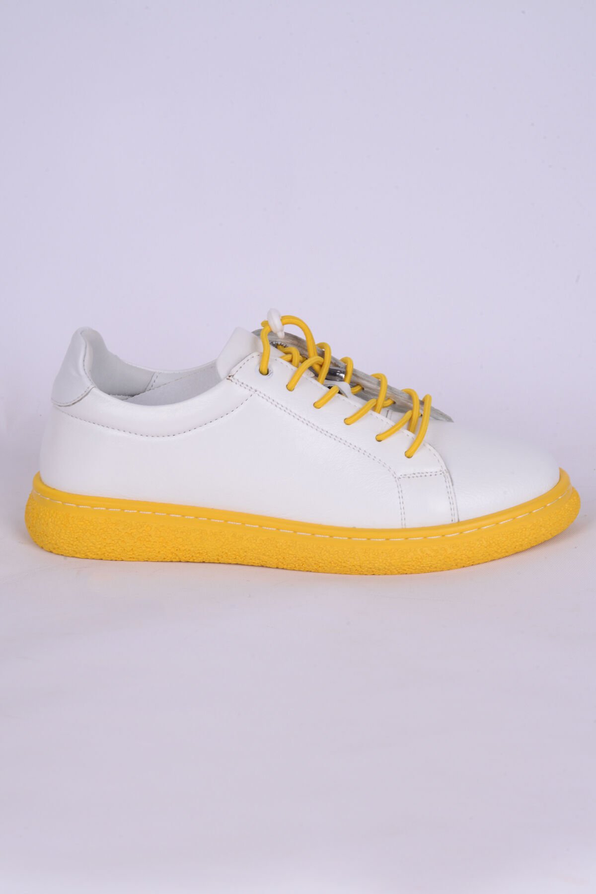 New Onix 037 Deri Ortopedik Taban Bağcıkları Lastikli Hafif Rahat Esnek Sarı Günlük Kadın Ayakkabı