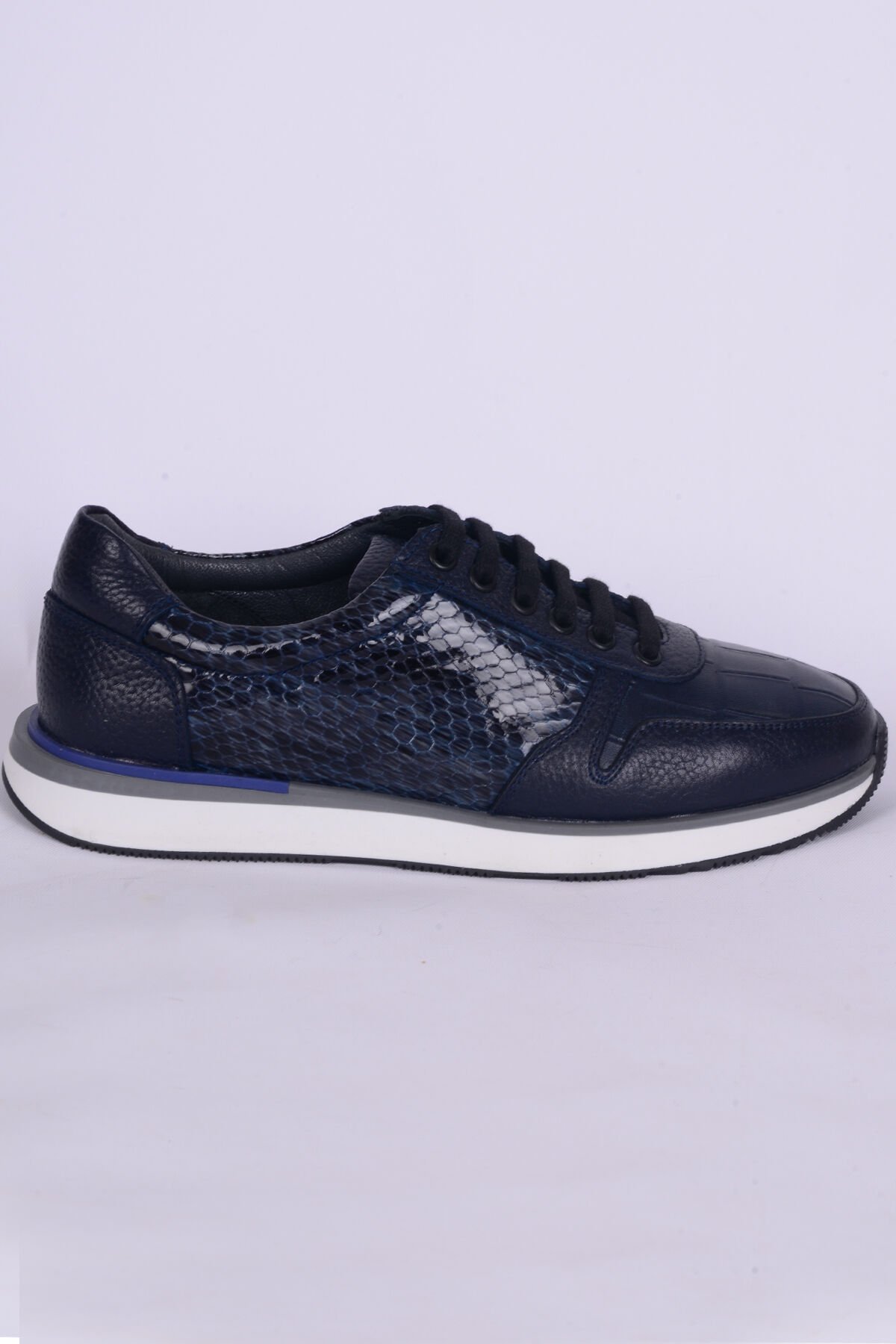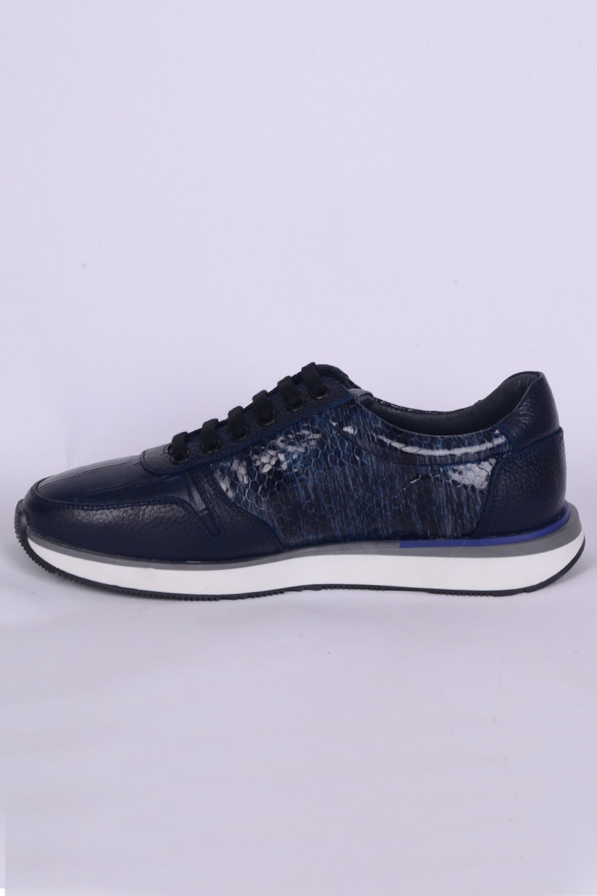 New Onix 1253 Deri Desenli Rahat Taban Bağcıklı Lacivert Günlük Erkek Ayakkabı