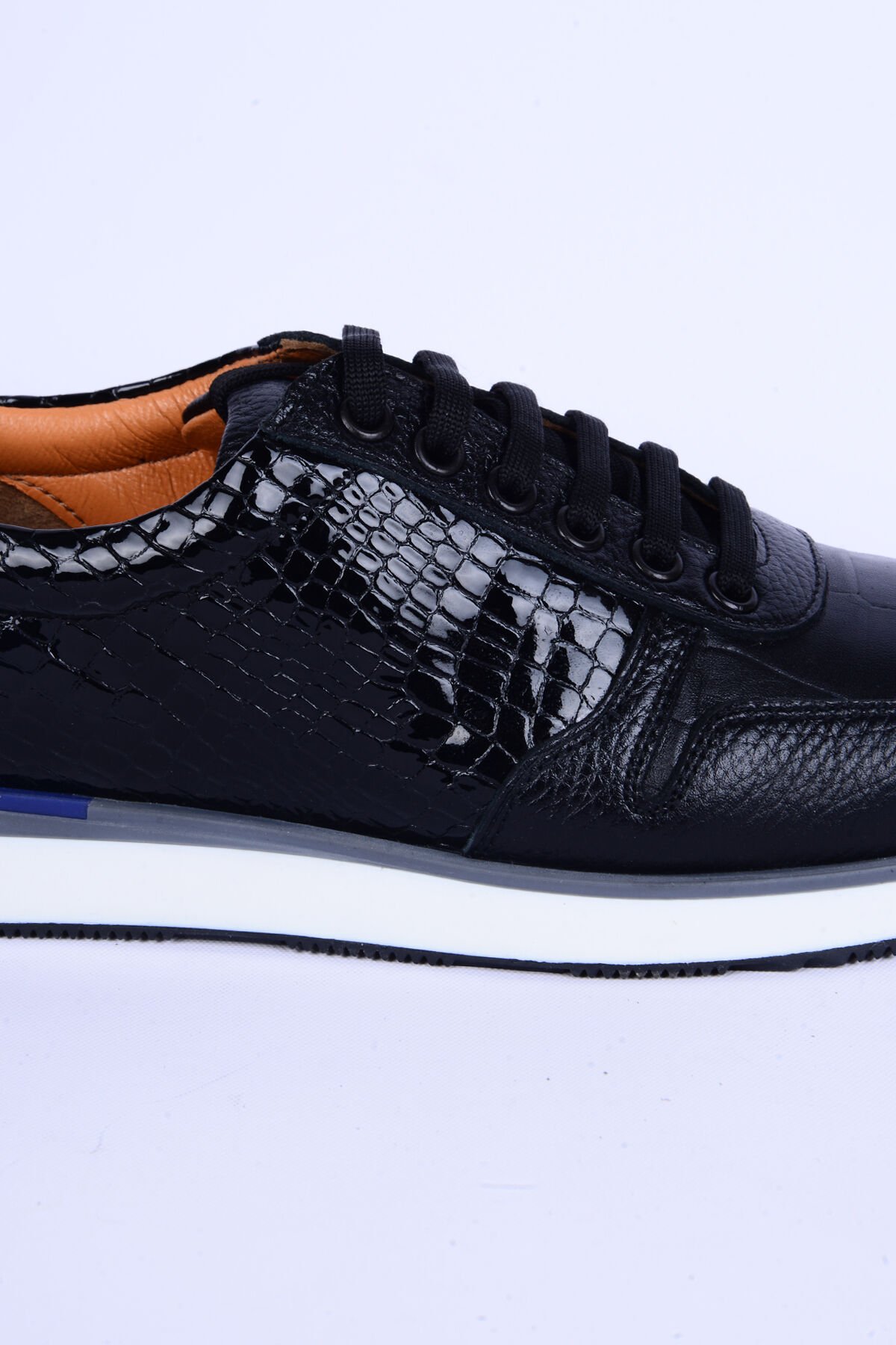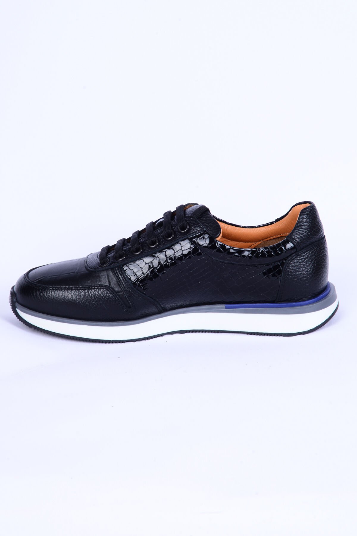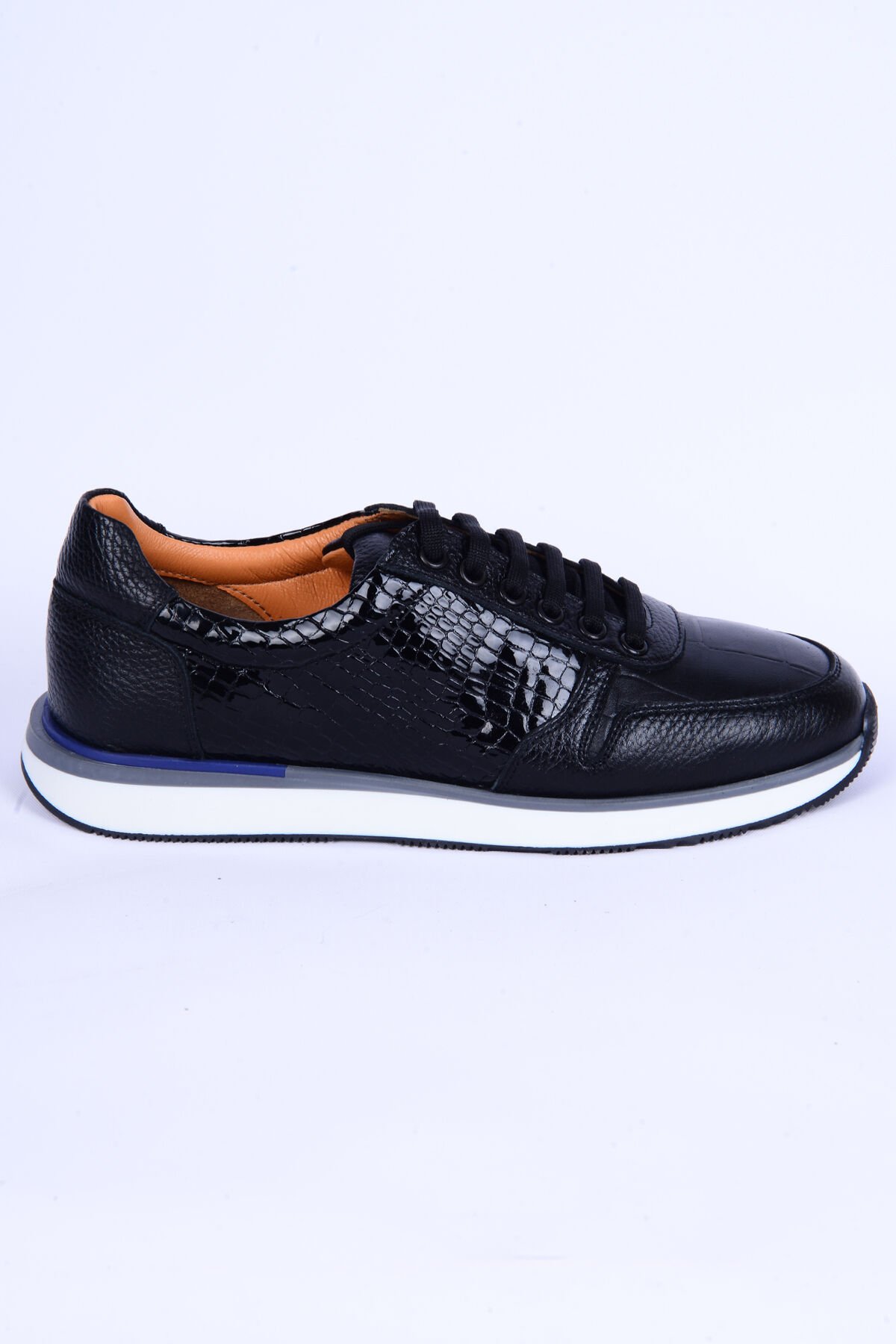 New Onix 1253 Deri Desenli Rahat Taban Bağcıklı Siyah Günlük Erkek Ayakkabı